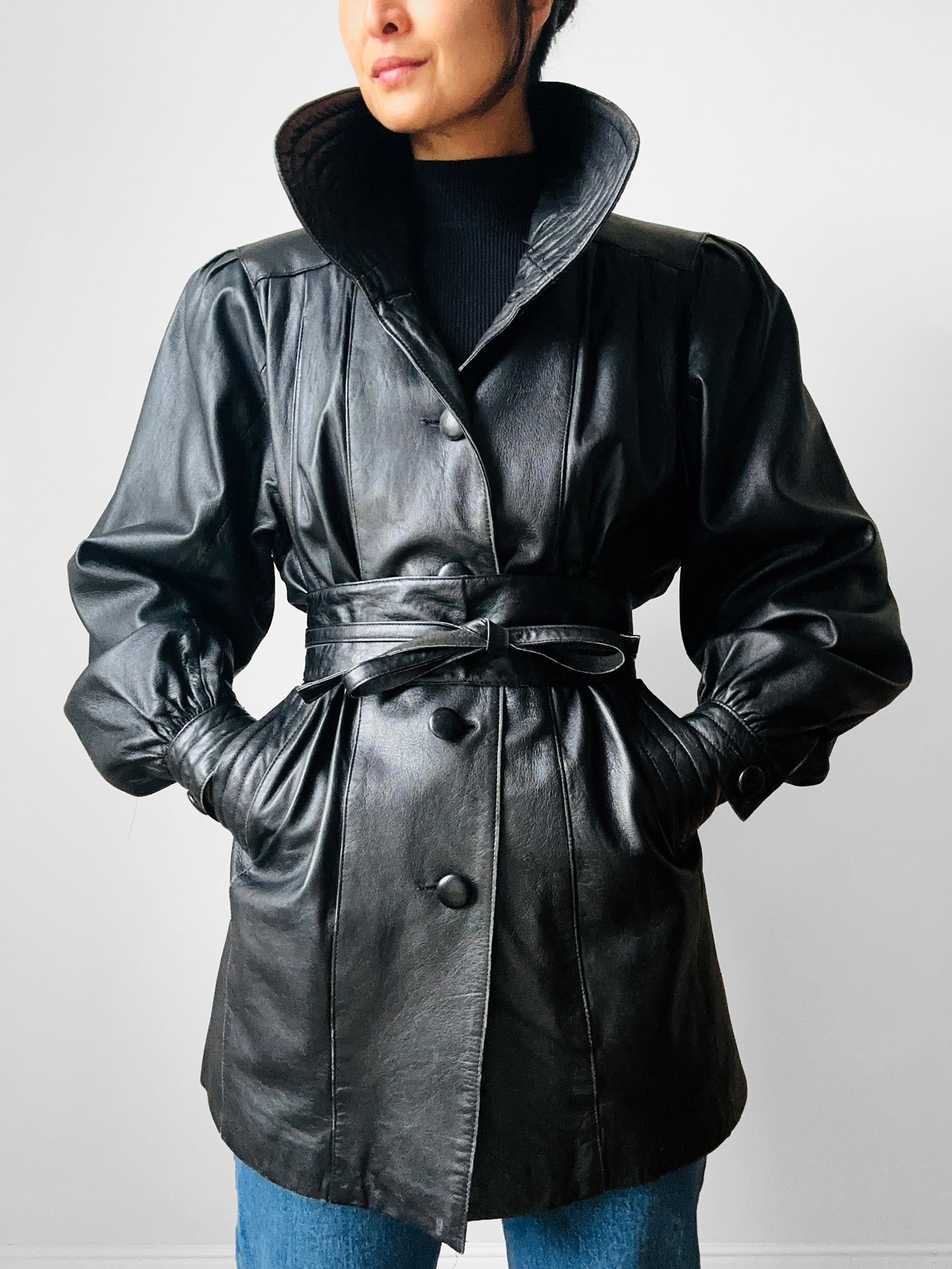 I absolutely love a garment that can be styled a number of ways. This incredible, buttery soft, 80s leather jacket is a true chameleon. The flexible lighter weight drape on this piece, is just begging to be belted. ( Belt in photo not included )