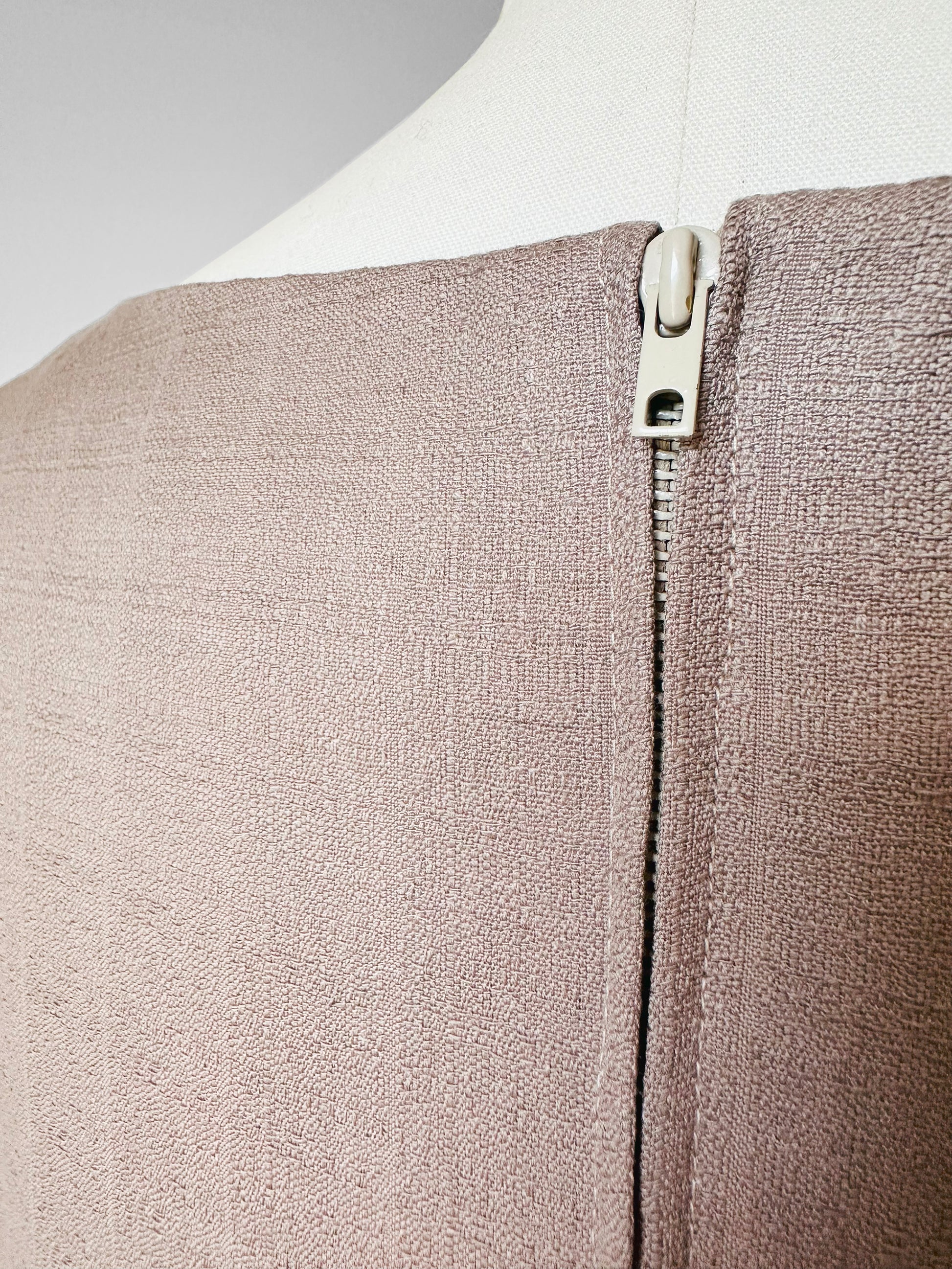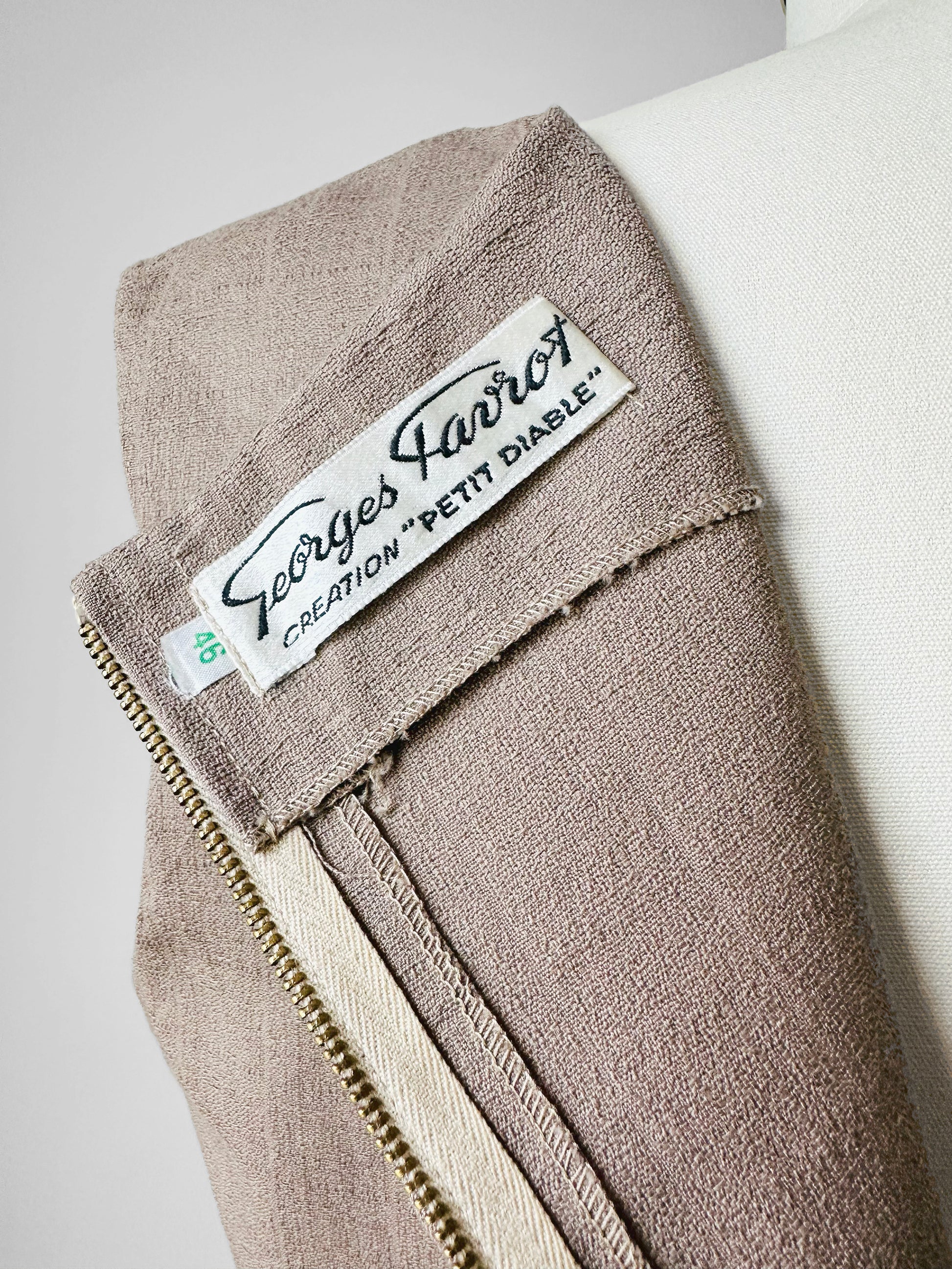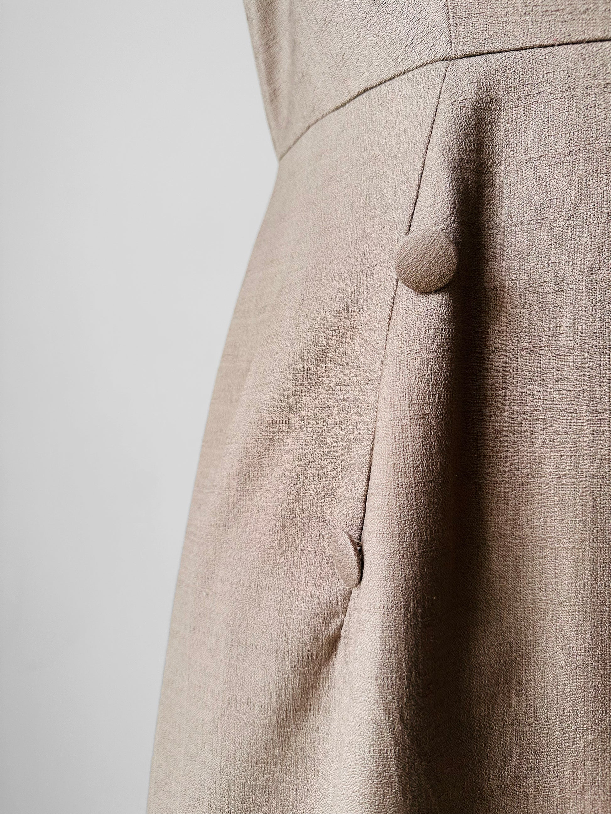 1960s Greige Zip Back Little Devil Button Detail Dress - Sz. M