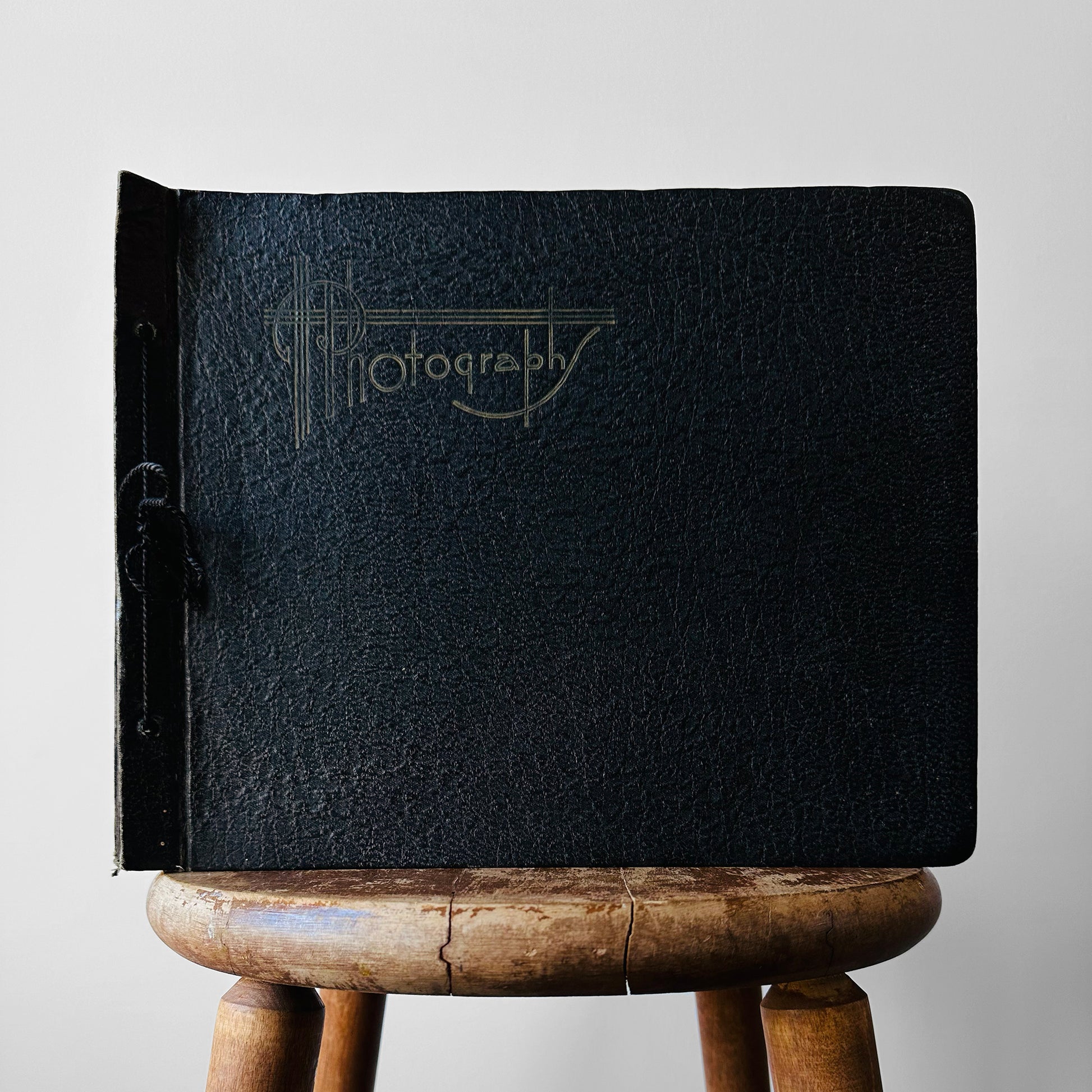 1920s - 1930s Black Leatherette Photo Album with Embossed Detail