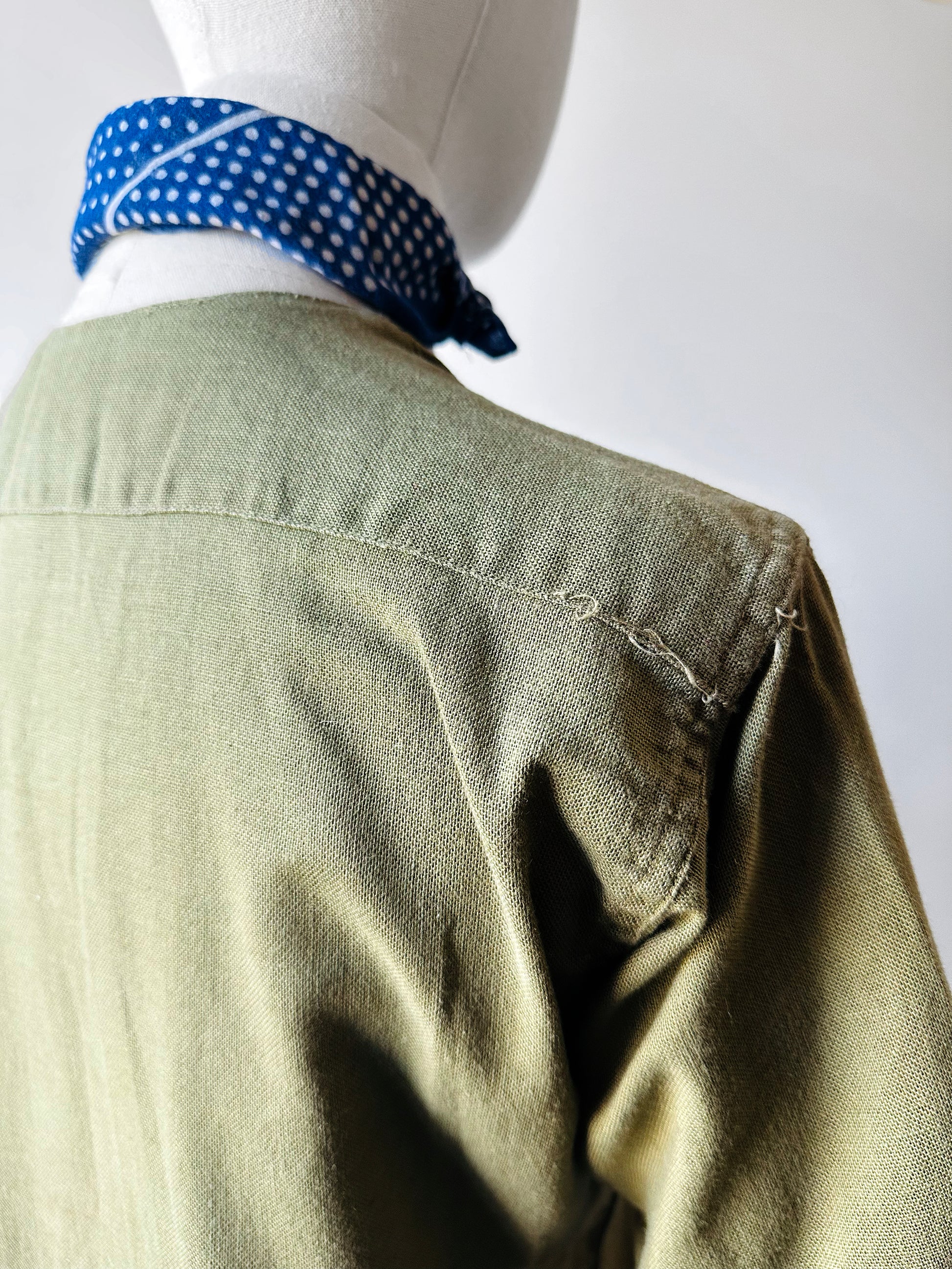 Distinctive design elements such as the V-neck, button-down pockets, and embroidered insignia mark this piece as part of a specific era in scouting history. The “Boy Scouts of America” patch on the chest pocket served as an official emblem, signifying authenticity and pride in membership. Today, vintage BSA uniforms are highly sought after by collectors and enthusiasts—not only for their craftsmanship and utilitarian design but also for their historical connection to youth movements and the enduring legacy of outdoor education in America.