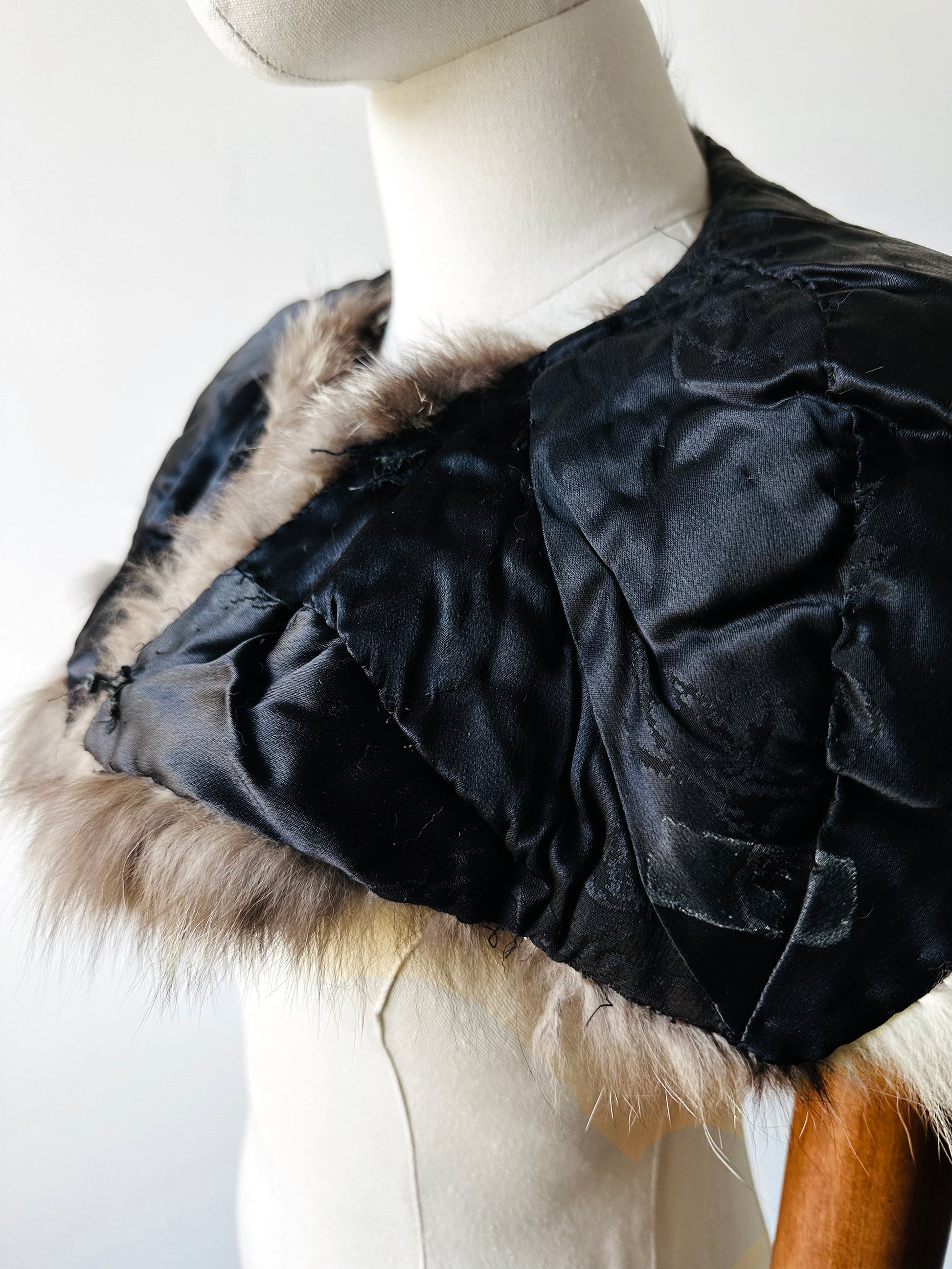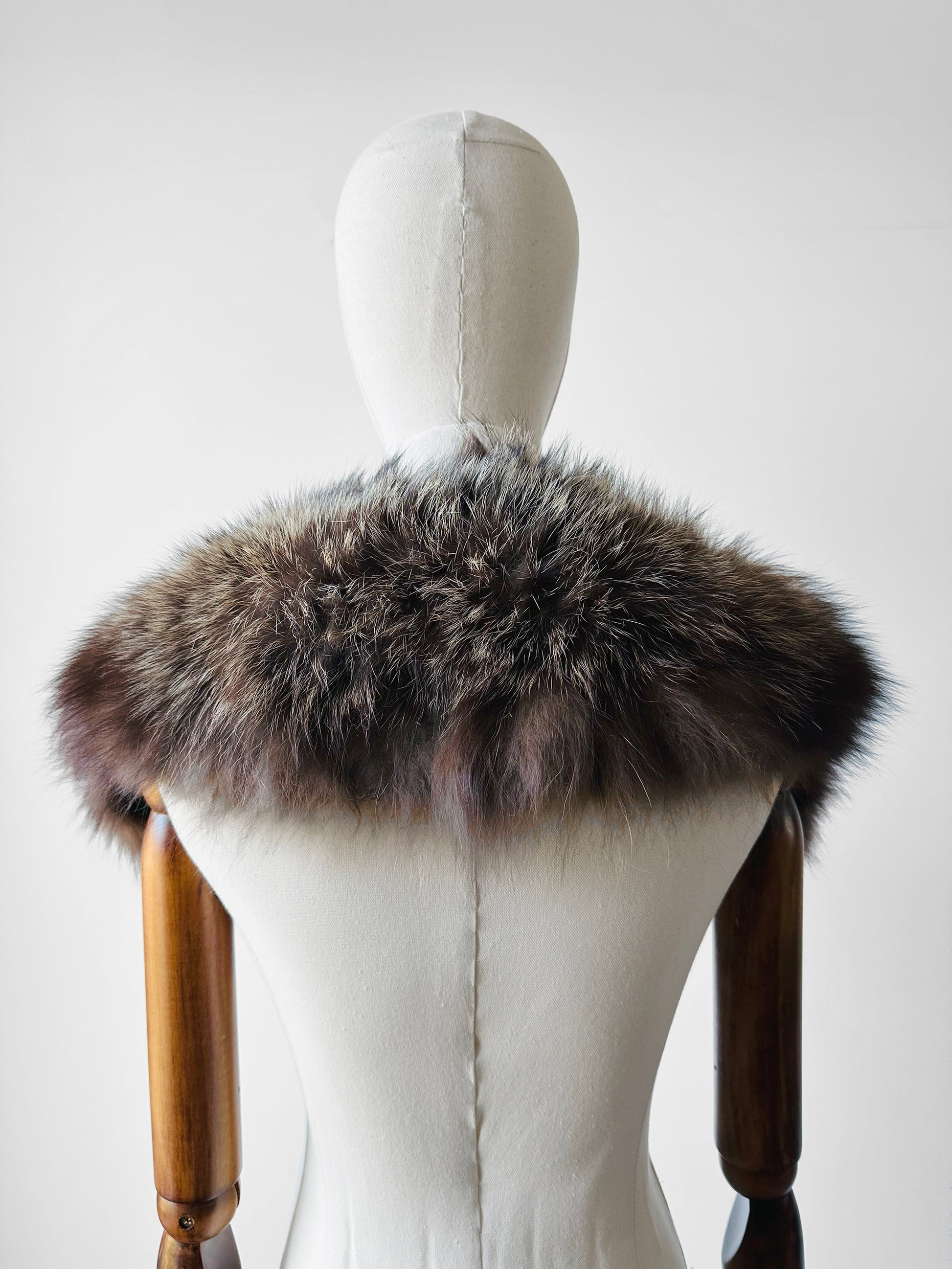 HISTORY: From the late Victorian era through the mid-20th century, fur collars and stoles were considered essential accessories for refined wardrobes. These luxurious pieces served both practical and aesthetic purposes—providing warmth while elevating outerwear and evening ensembles with an air of sophistication. Crafted from a variety of furs, fox was among the most coveted for its plush texture and opulent appearance. Designed for versatility, many collars could be fastened to coats or worn as standalone wraps, reflecting the era’s emphasis on adaptability and elegance. Today, they remain enduring symbols of vintage glamour and timeless style.