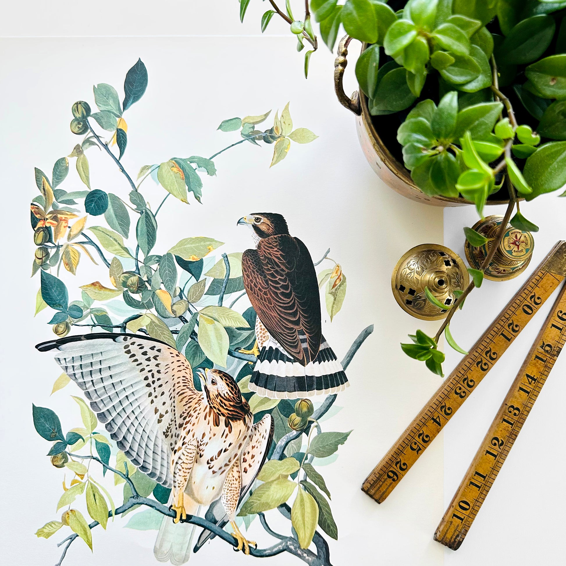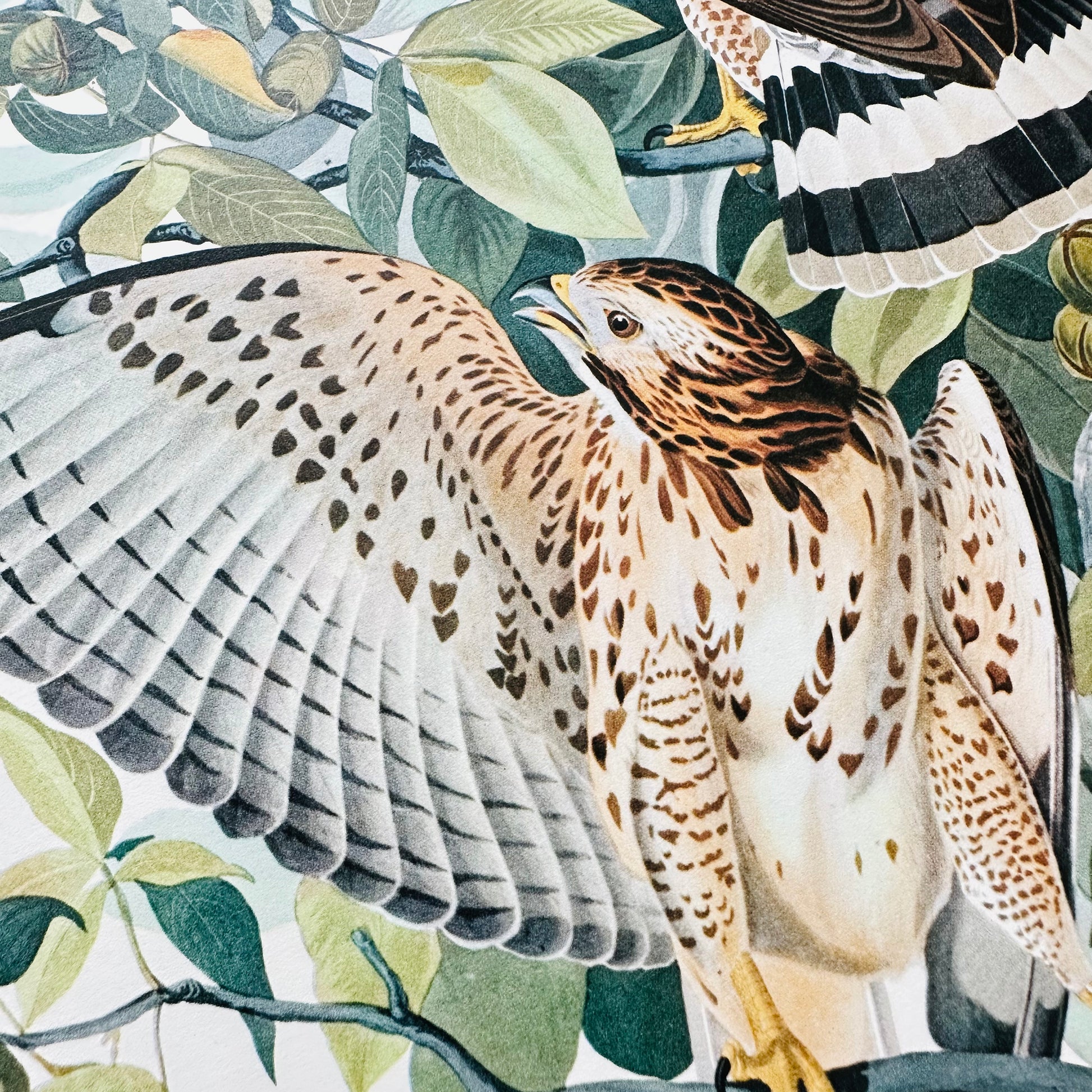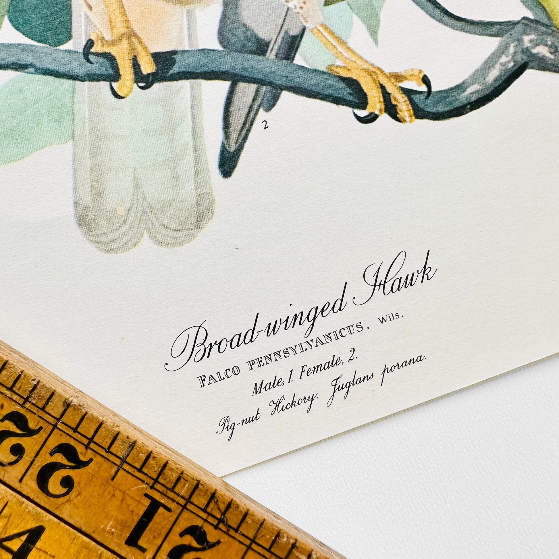 Vintage Mid-Century Audubon 17 by 14 Original Broad-winged Hawk Art Print Wall Hanging