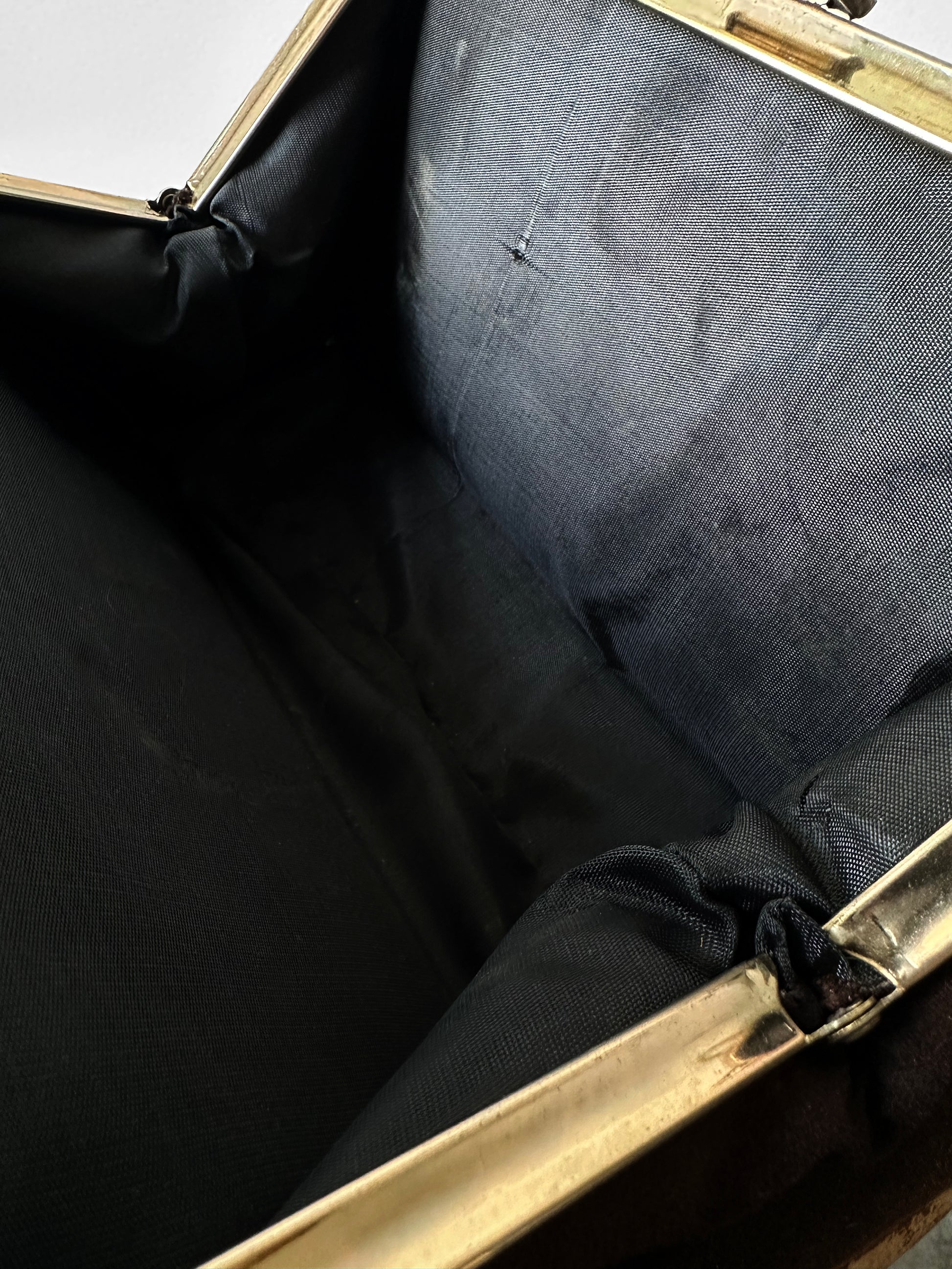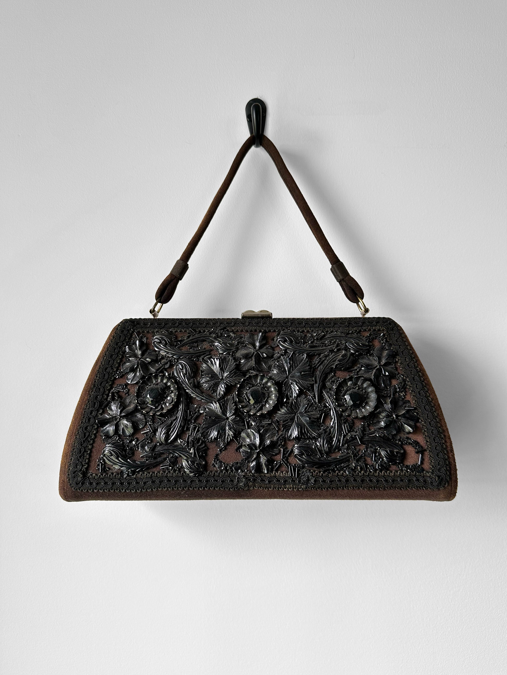 HISTORY: Caron of Houston earned its reputation as a distinguished American handbag maker, celebrated for crafting exquisite evening bags during the mid-20th century. Known for their artistry and attention to detail, the company specialized in luxurious designs adorned with intricate beadwork, delicate embroidery, and distinctive patterns. Each piece reflected sophistication and individuality, appealing to a discerning clientele who sought accessories that were as elegant as they were unique. Today, Caron of Houston remains a symbol of timeless glamour and exceptional craftsmanship even though they are no longer in business today.