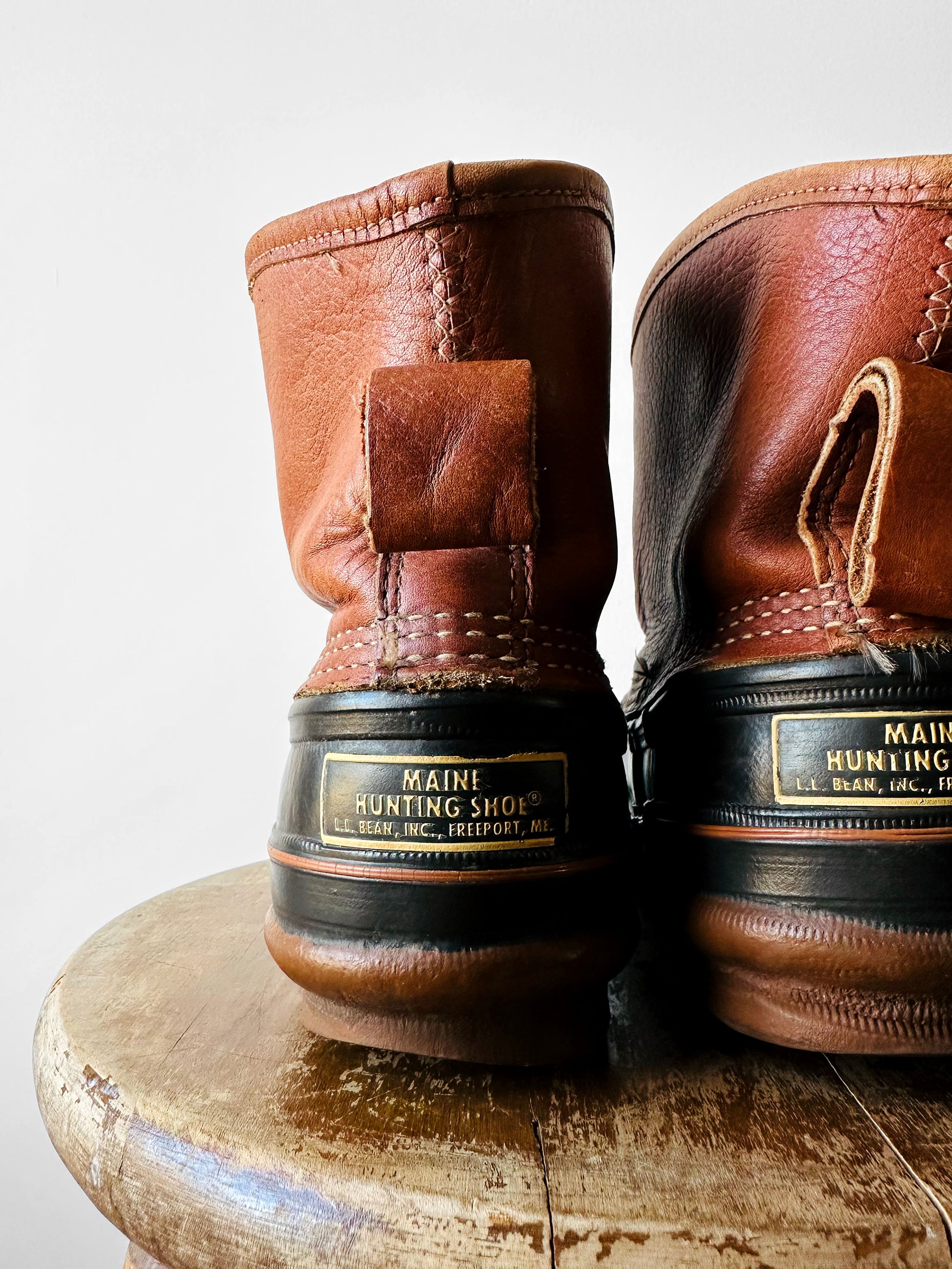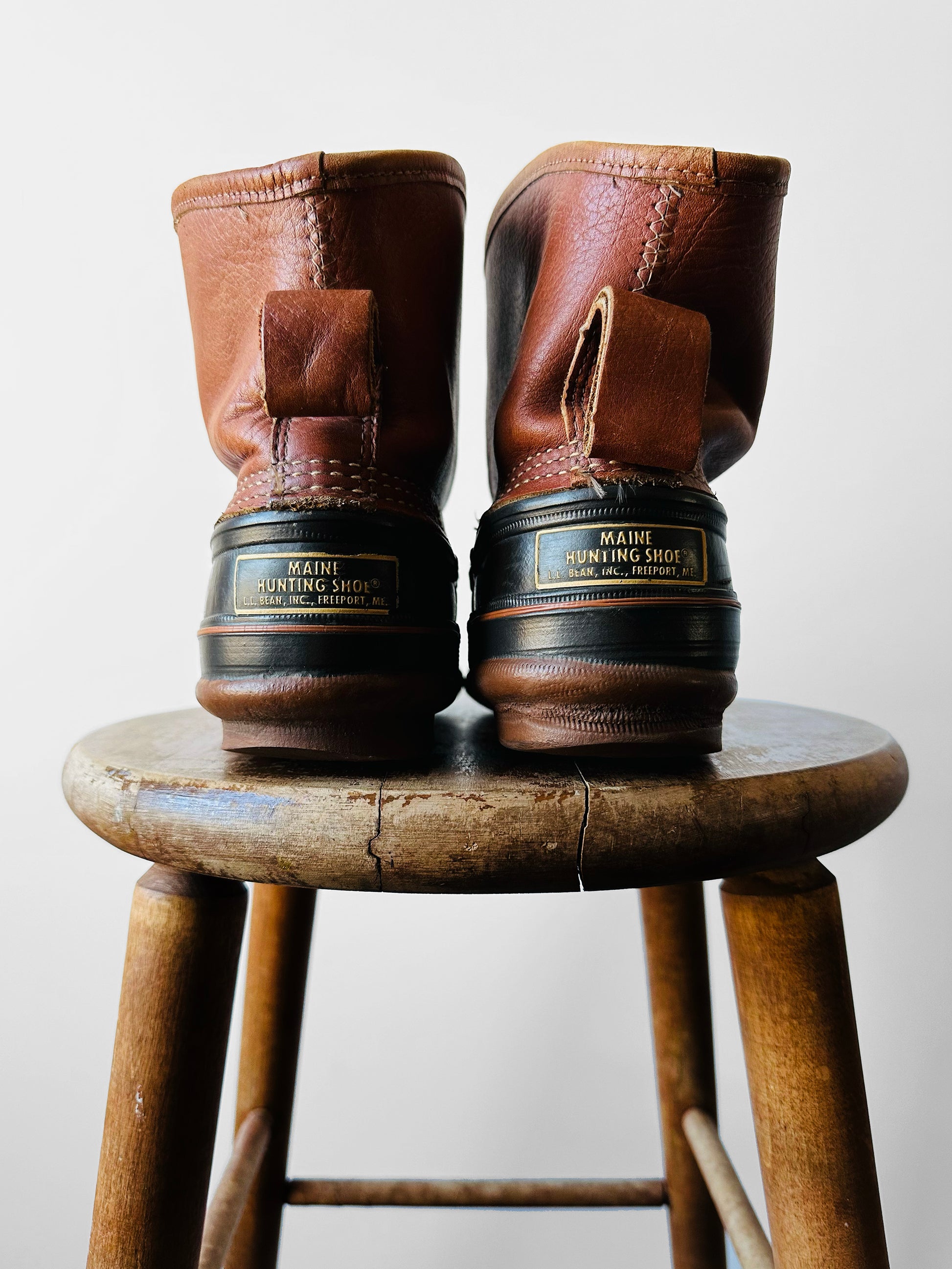 DESCRIPTION: Own a piece of rugged heritage with these Vintage Mid-Century L.L. Bean Shearling-Lined Boots. Built for men who demand durability and timeless style, these boots combine a waterproof rubber bottom with a rich leather upper, delivering unbeatable protection and classic appeal. The shearling lining offers warmth and comfort, while the signature chain-stitch construction and chain-grip sole ensure superior traction on any terrain. Perfect for outdoor adventures or adding a bold, heritage-inspired edge to your everyday look—these boots are more than footwear; they’re a statement of strength and enduring craftsmanship.