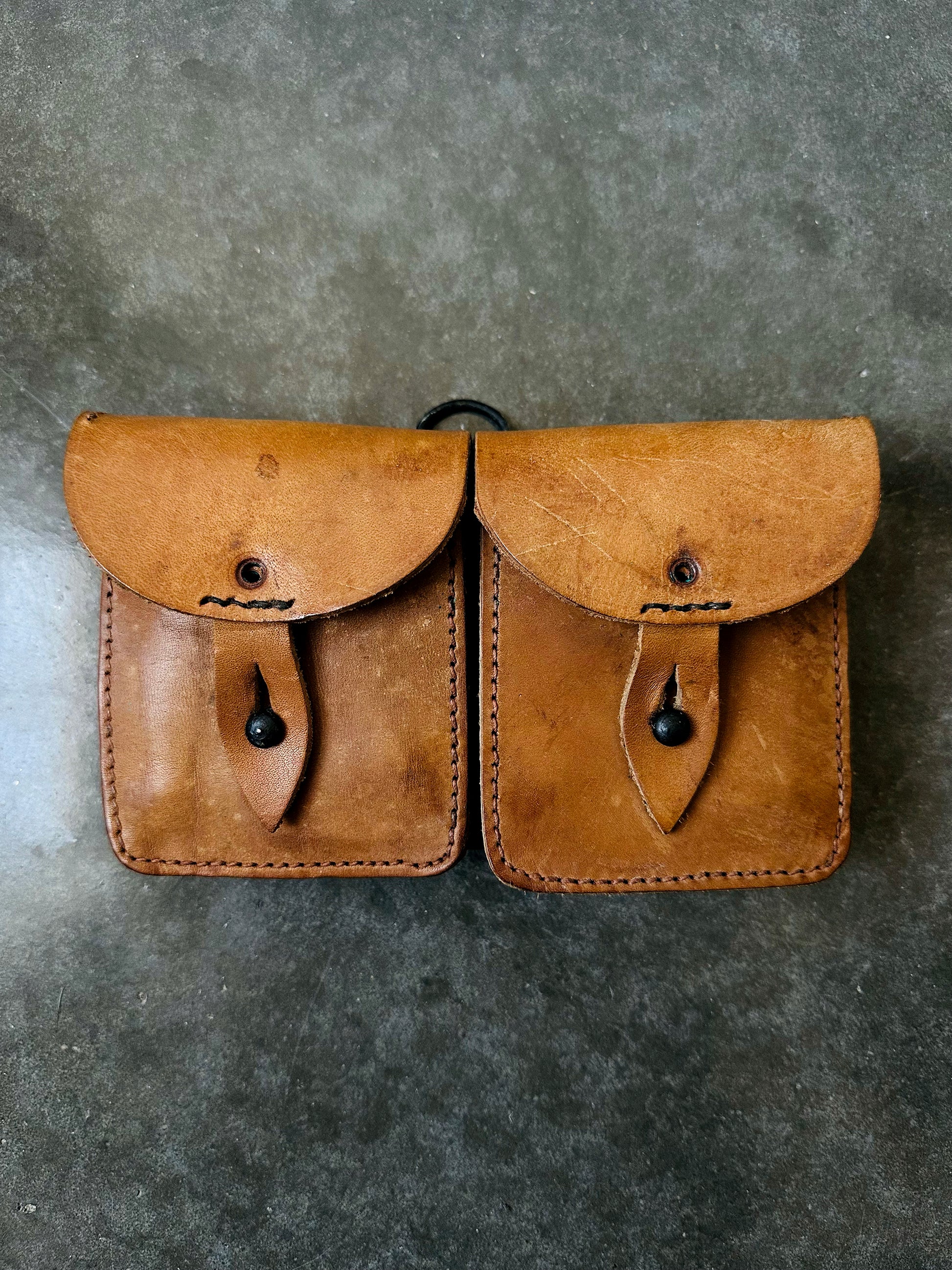 Such pouches were indispensable to soldiers, safeguarding ammunition and magazines during campaigns across unforgiving terrain. Today, these relics stand as tangible links to history, prized by collectors of military memorabilia and enthusiasts of vintage leather for their authenticity and enduring craftsmanship—a testament to the resilience and resourcefulness of those who carried them.