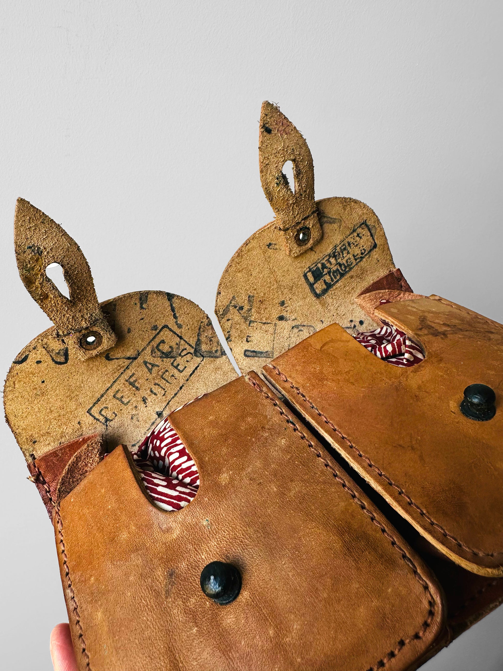 1950s Mid-Century Tan Military Double Leather Ammunition Belt Pouch