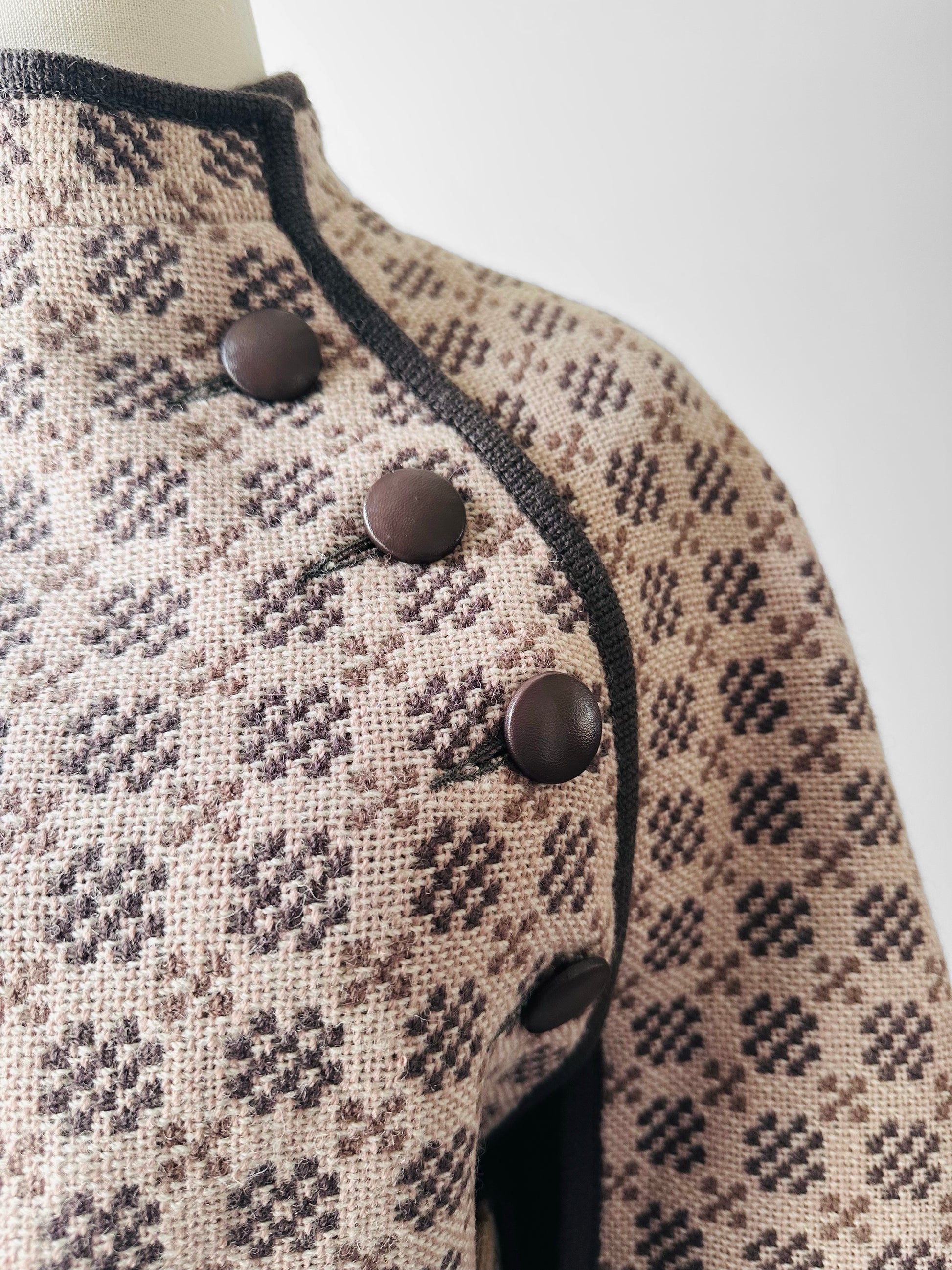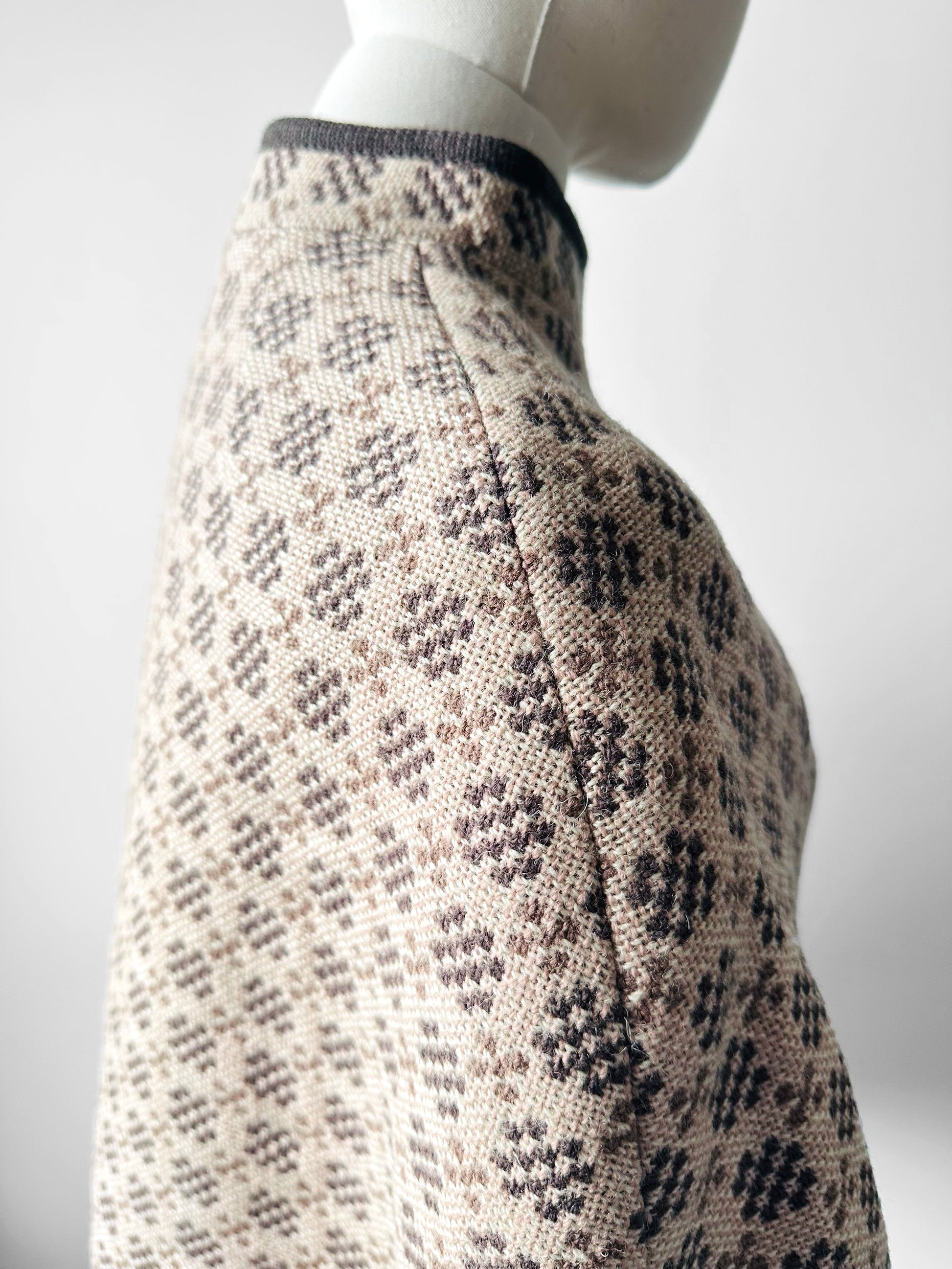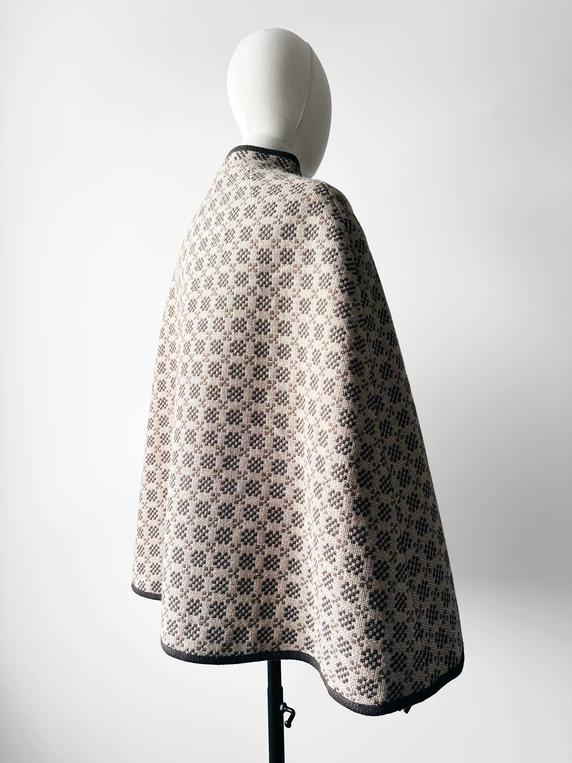 1960s - 1970s Soft Taupe Trefriw Woollen Mills Welsh Deadstock Patterned Cape Coat