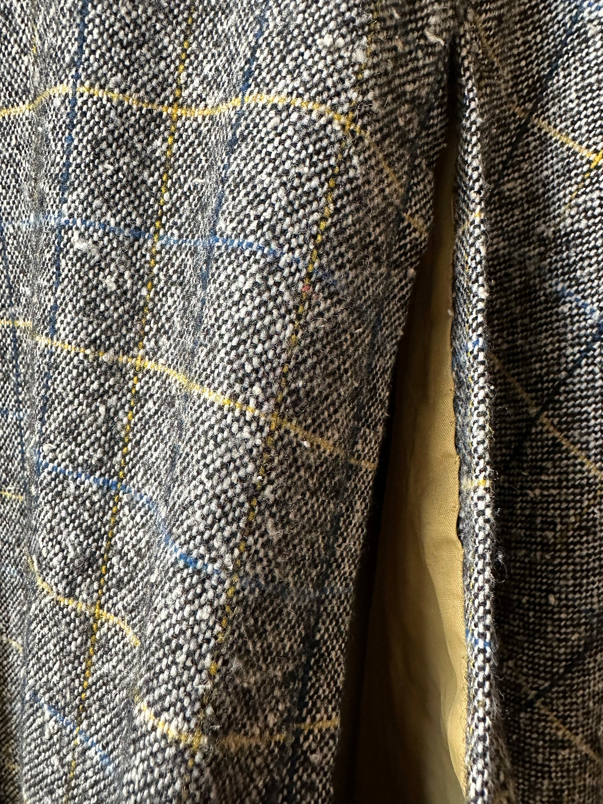 I am such a huge fan of the cape style coat when it comes to vintage fashion. There's just something so dreamy and playful about it. The yellow lining on this item peeks out and pops as you move and sway. It's done in a longer cut as well for added warmth. It's more of a medium weight so it's best for warmer Fall days. With that said, I would easily layer this over another jacket or coat. It is just the type of item that is made for layering.