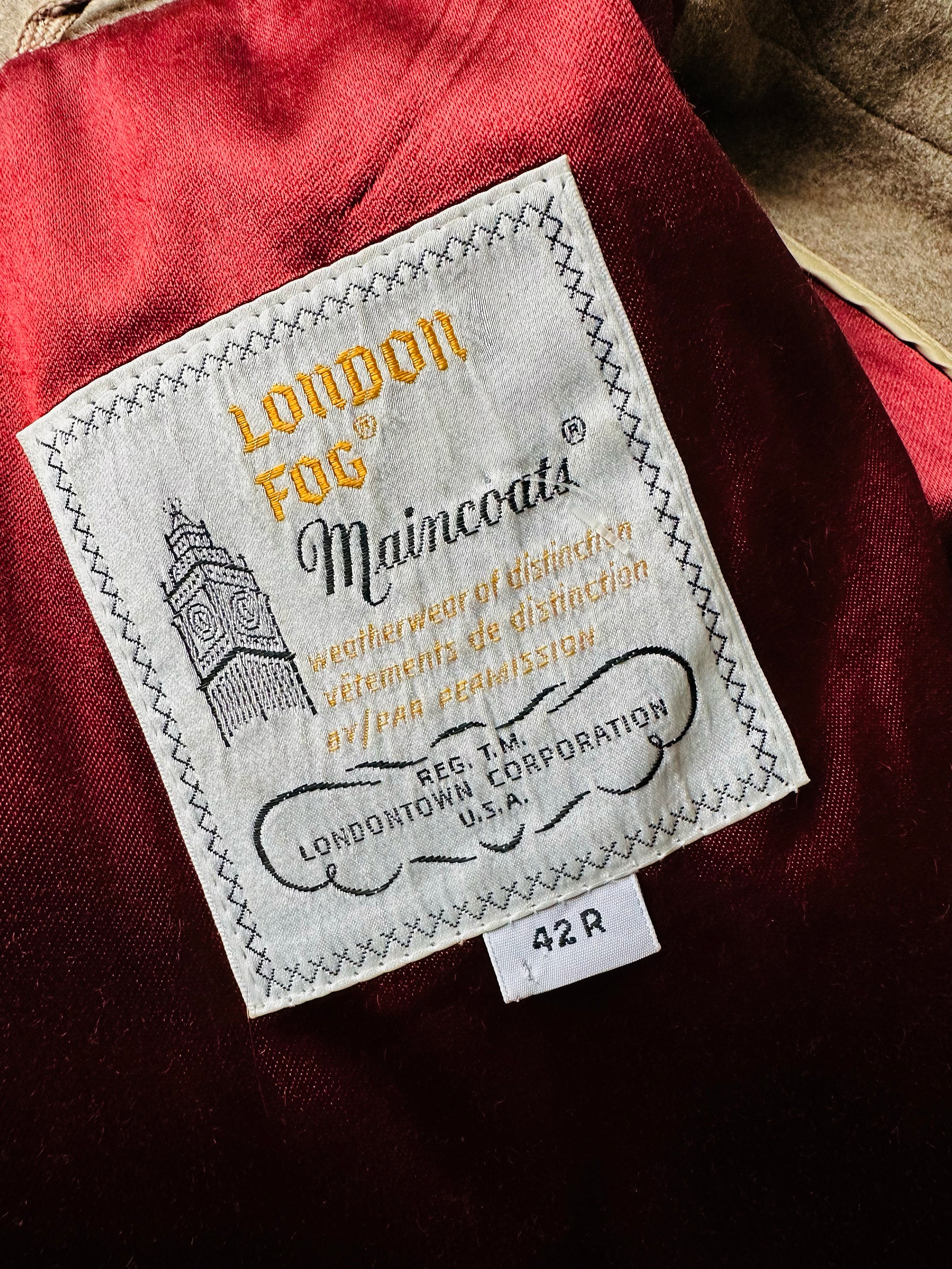 HISTORY: Founded in 1923, London Fog began as a manufacturer of waterproof coats and quickly became synonymous with quality outerwear. By the mid-20th century, the brand was a household name in America, celebrated for its trench coats and tailored wool designs that combined practicality with timeless elegance. Known for impeccable craftsmanship and enduring style, London Fog garments remain iconic pieces in the history of fashion, representing a blend of sophistication and functionality that defined mid-century outerwear.