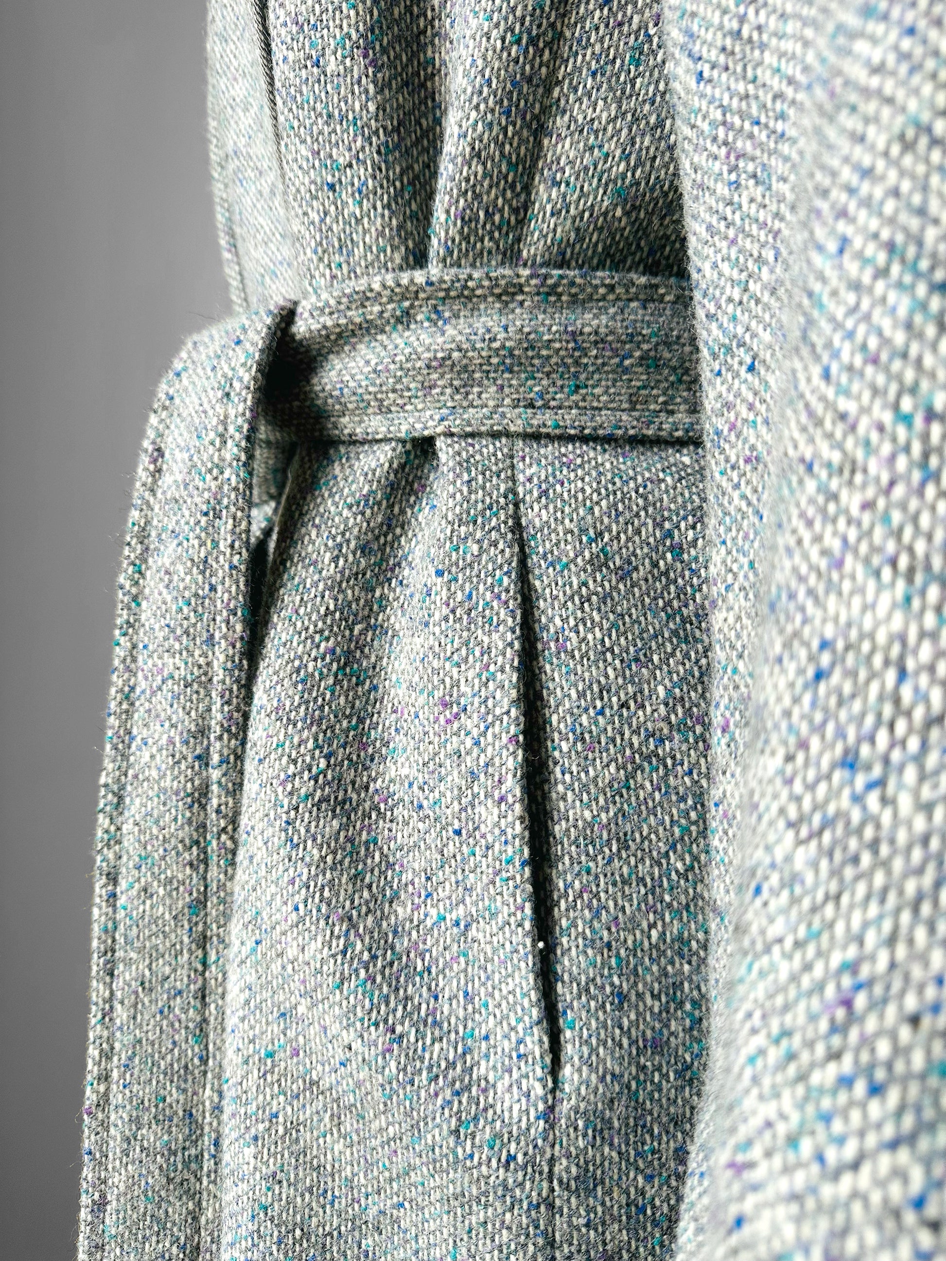 This belted beauty is the epitome of minimalist elegance. Its tailored silhouette exudes sophistication, while the high-end craftsmanship and blush-pink lining whisper luxury with every detail. The mandarin-style collar not only shields you from the elements but adds a chic, uniform-inspired edge. Finished in a refined grey with a subtle bluish undertone, this piece is timeless, versatile, and effortlessly polished—a statement coat for those who love understated glamour.
