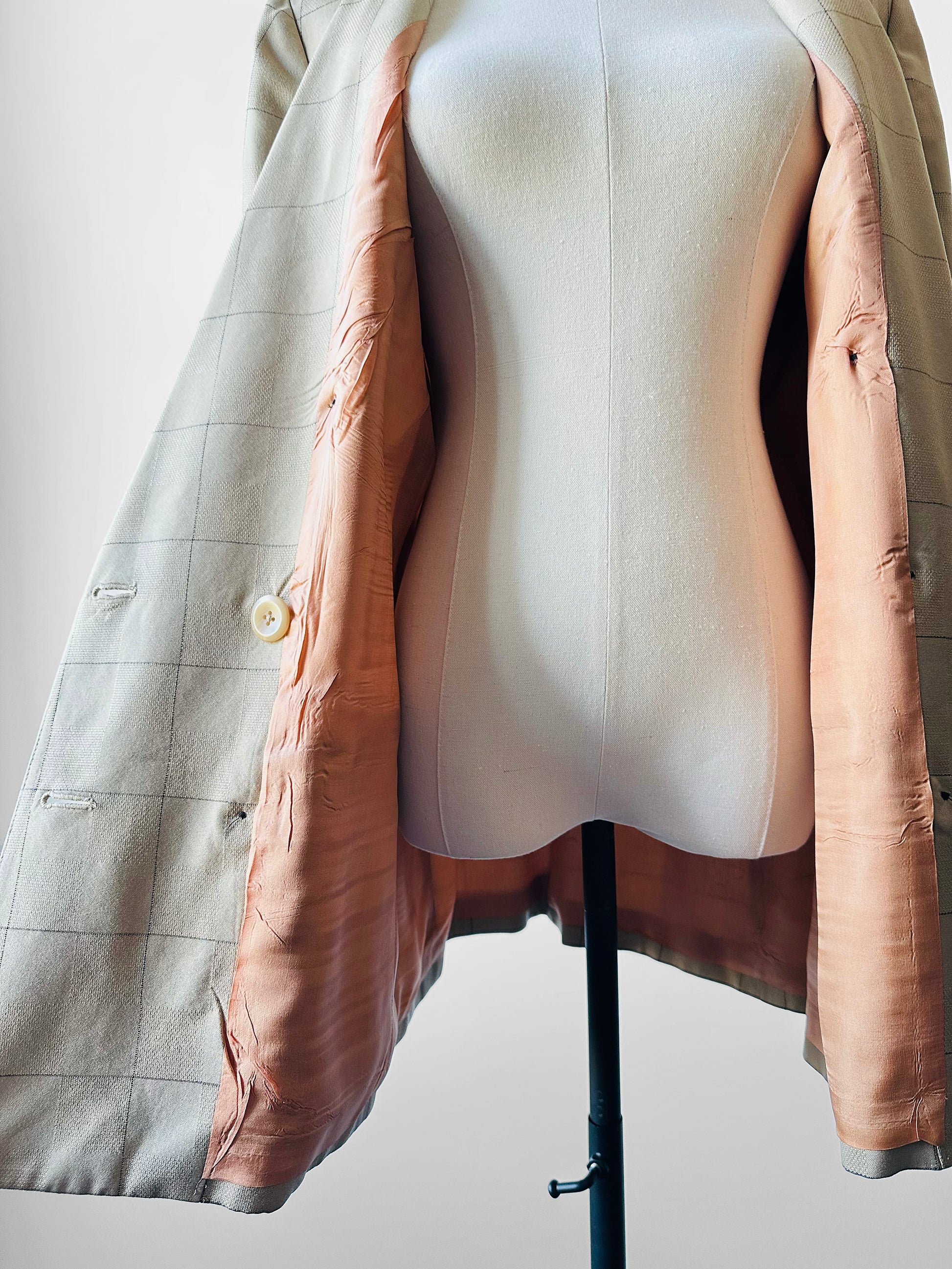 1980s - 1990s Kasper Light Beige Check Double-Breasted Blazer Jacket - Sz. S/M