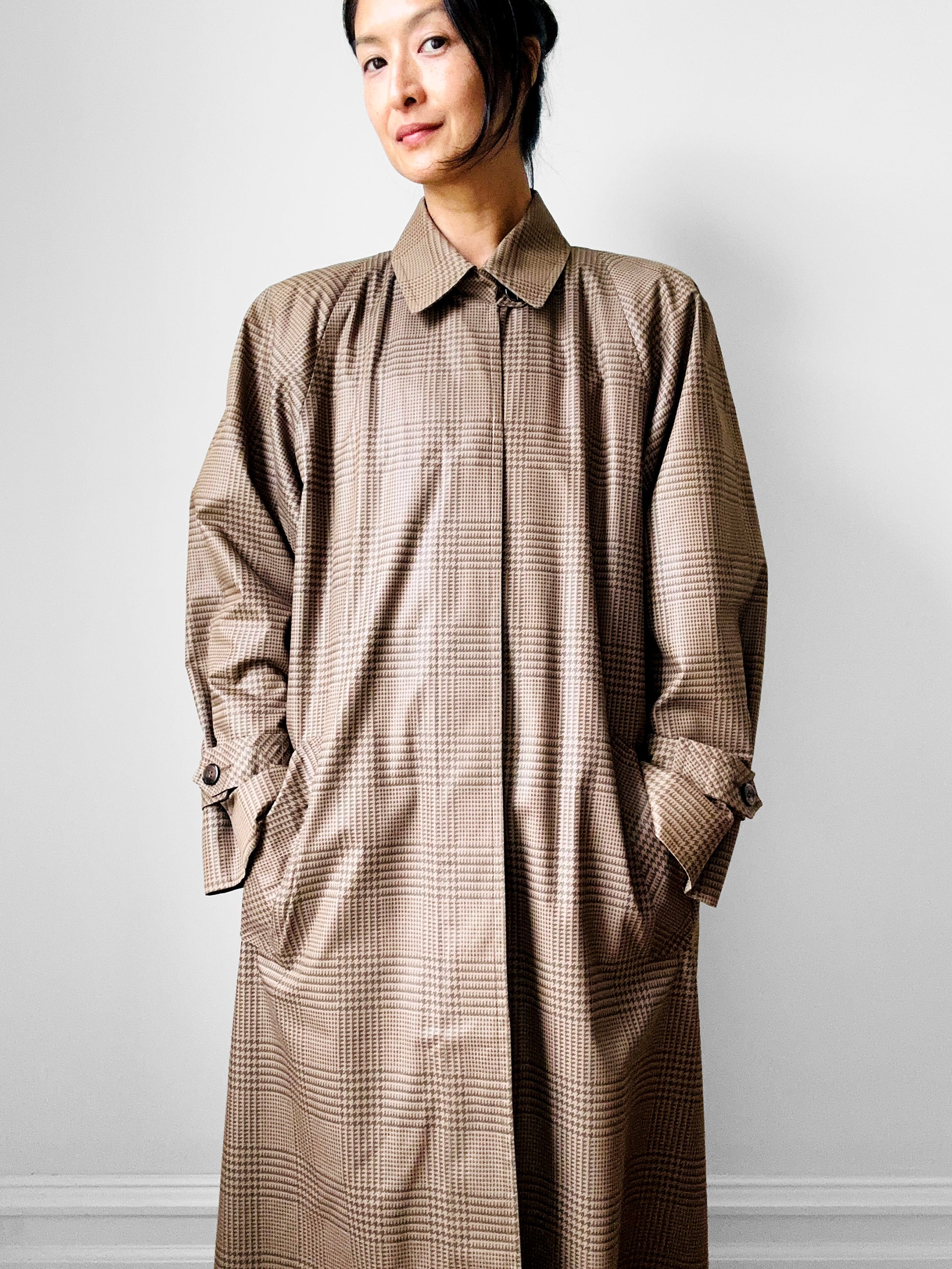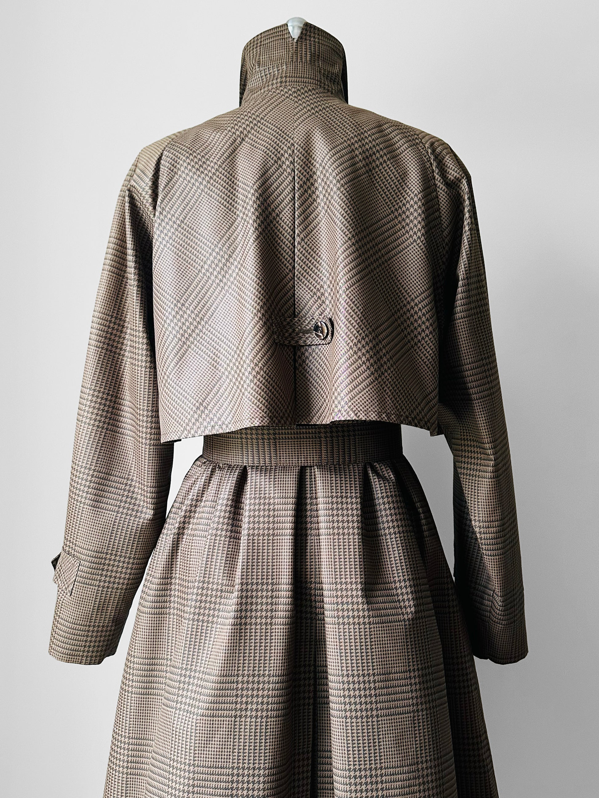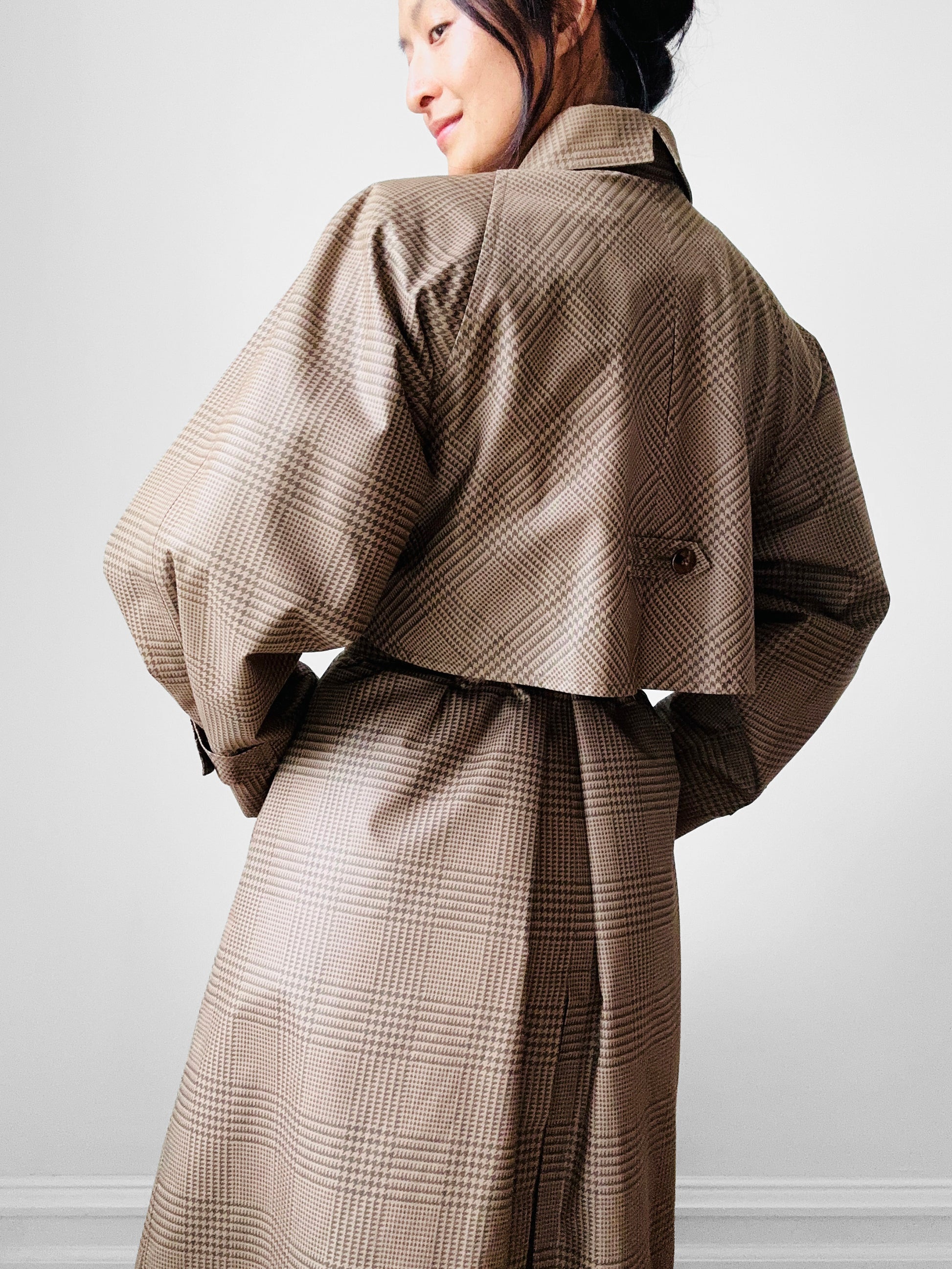 1980s Beige Houndstooth LONDON FOG Lined Belted Rain Aline Trench - Sz. S/M