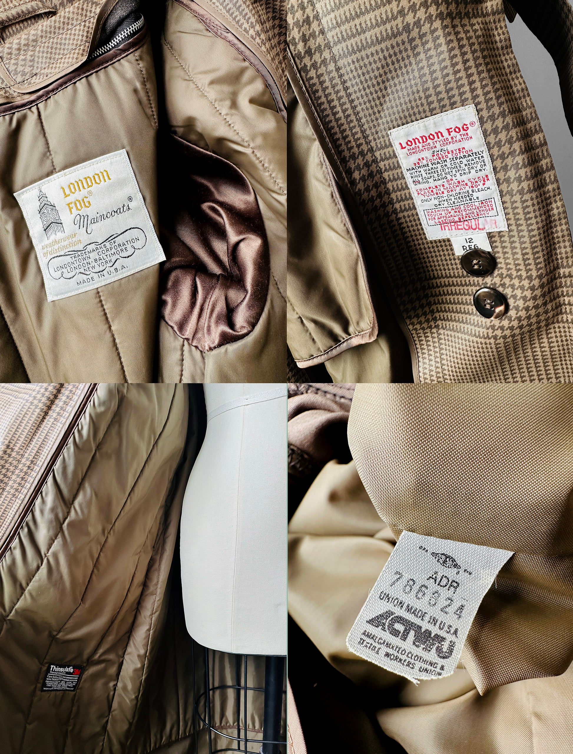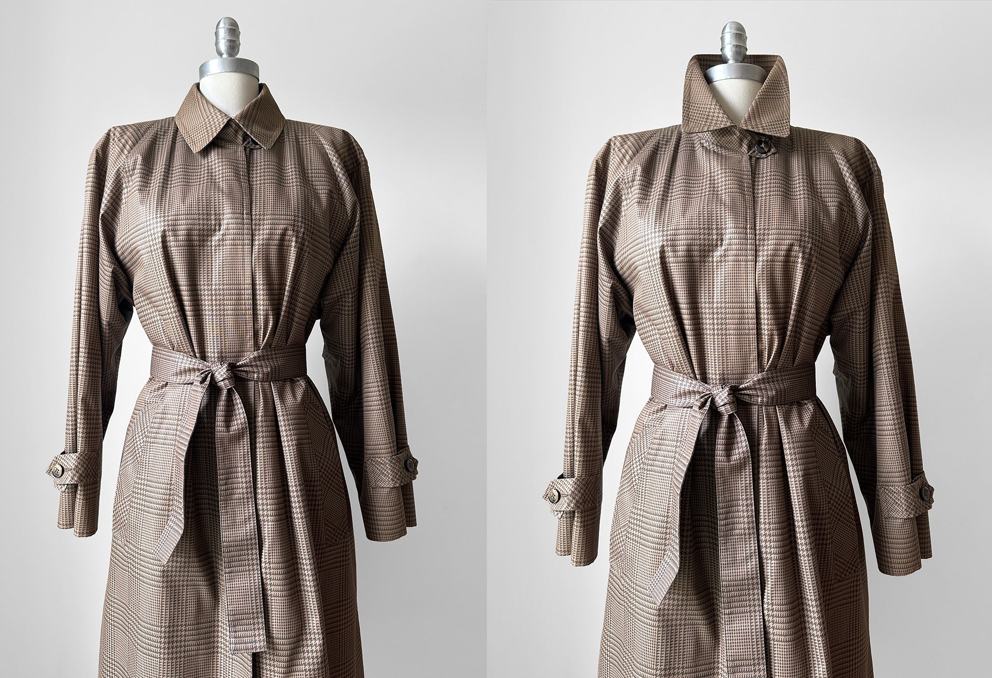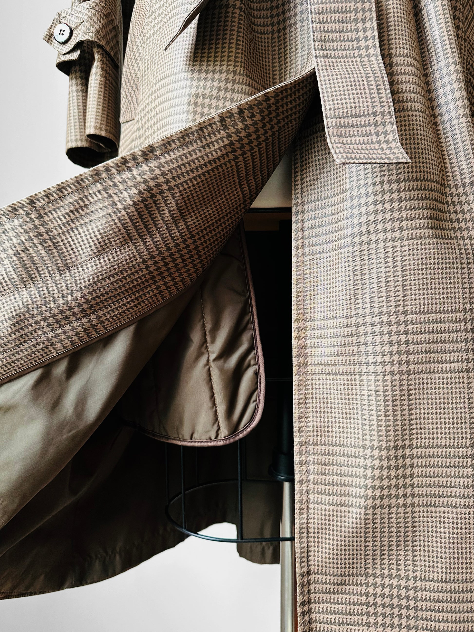 1980s Beige Houndstooth LONDON FOG Lined Belted Rain Aline Trench - Sz. S/M