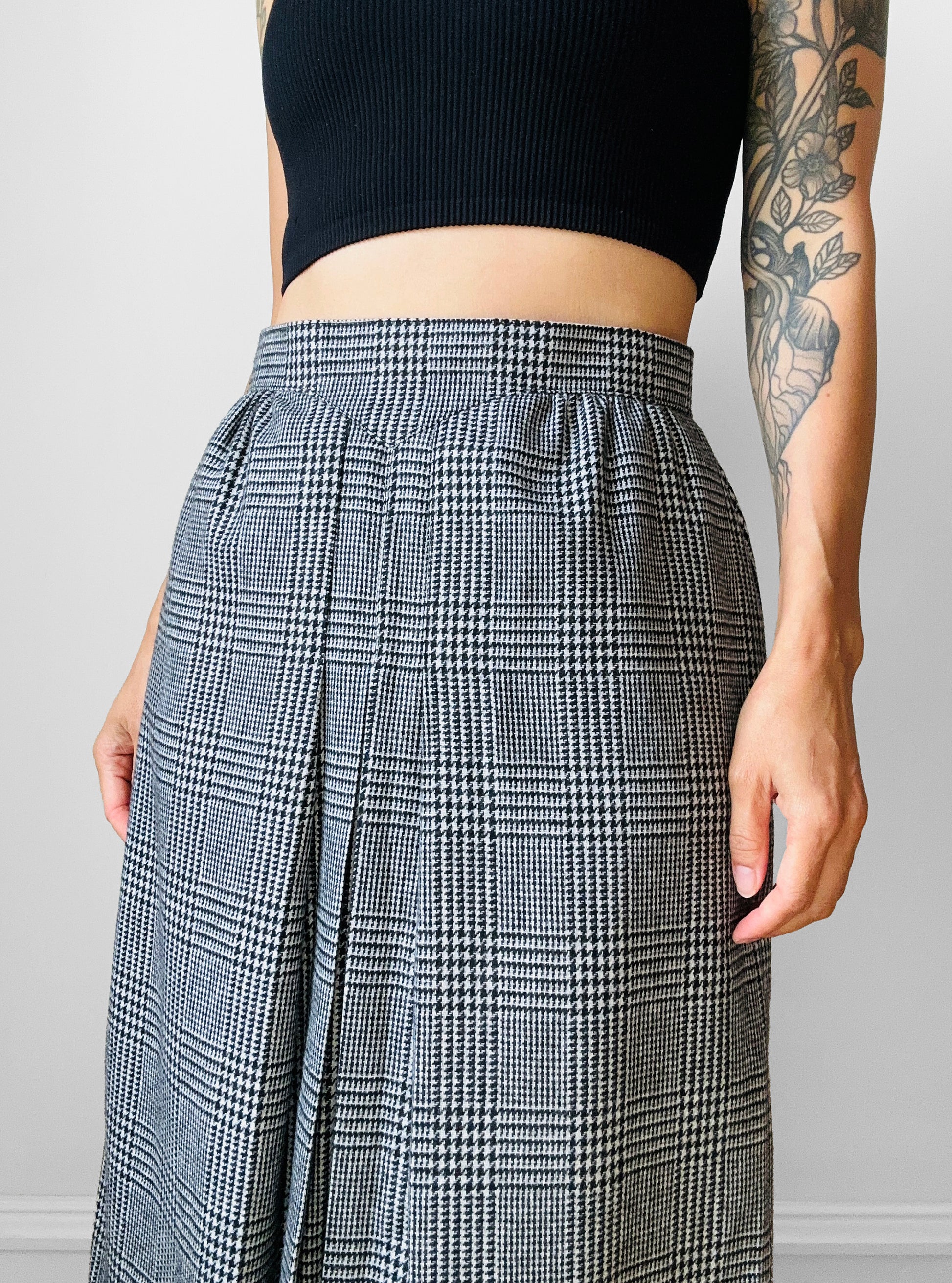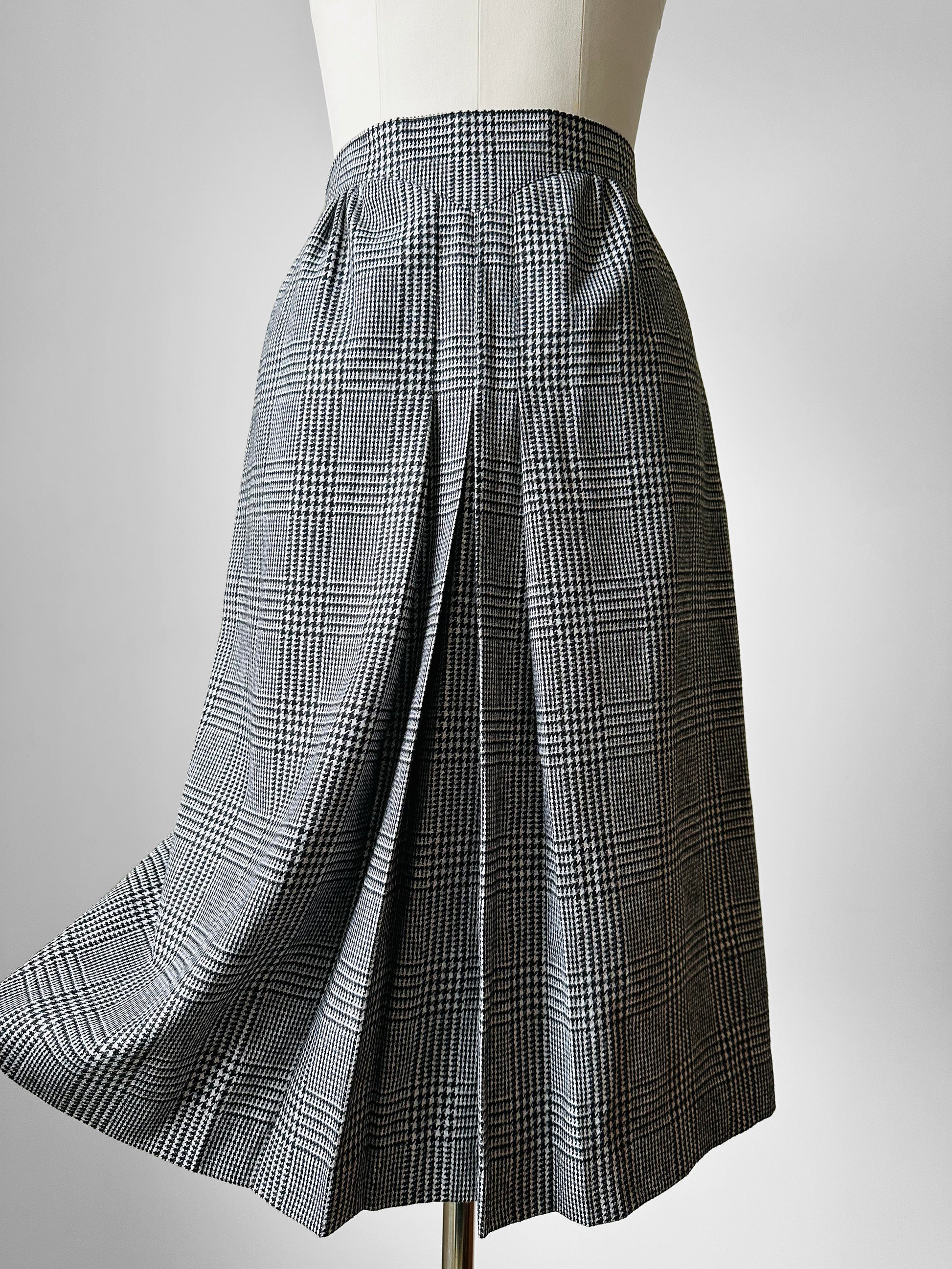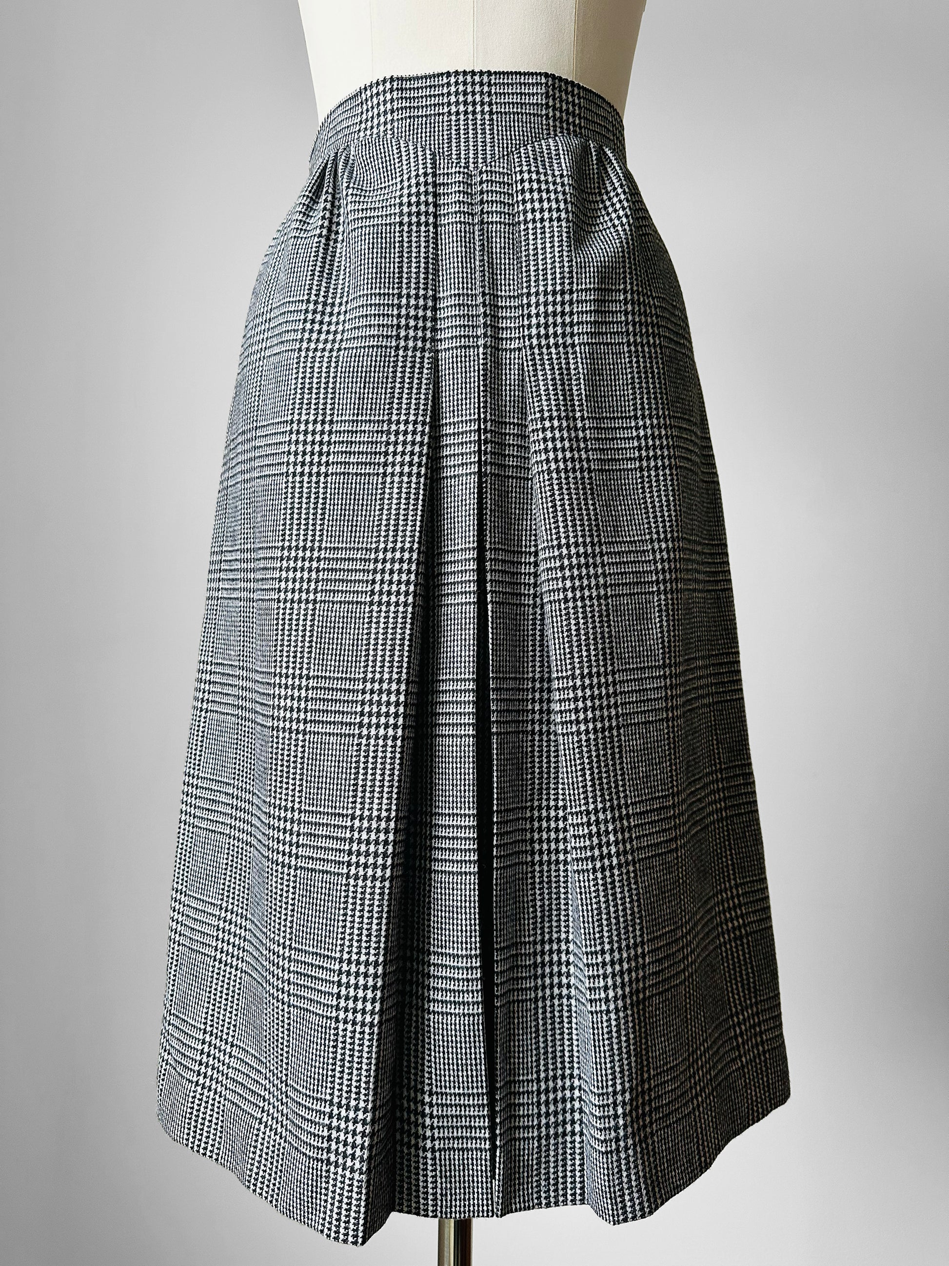 1980s Black and White Houndstooth A-line Inverted Pleat Skirt - Sz. Sm