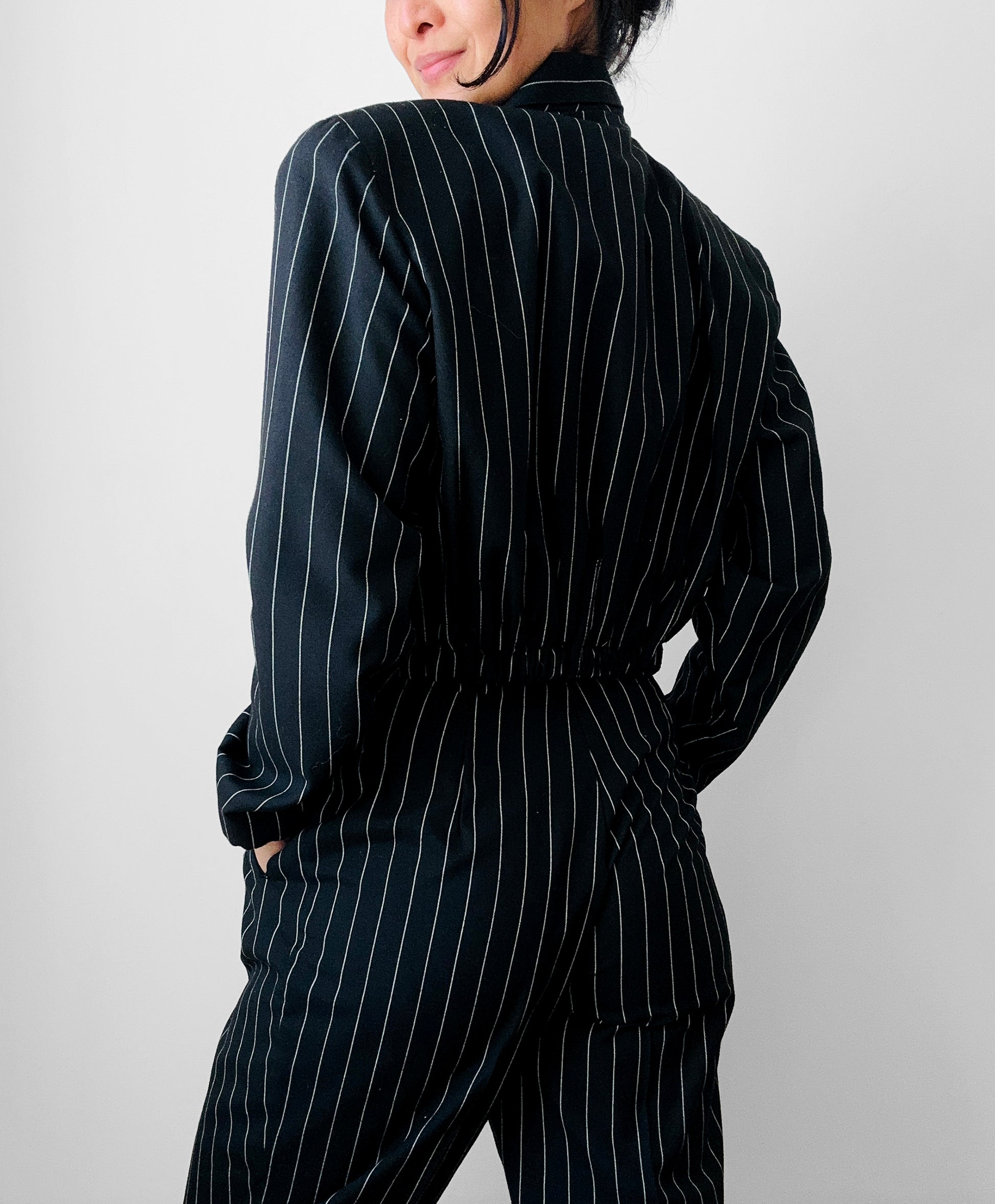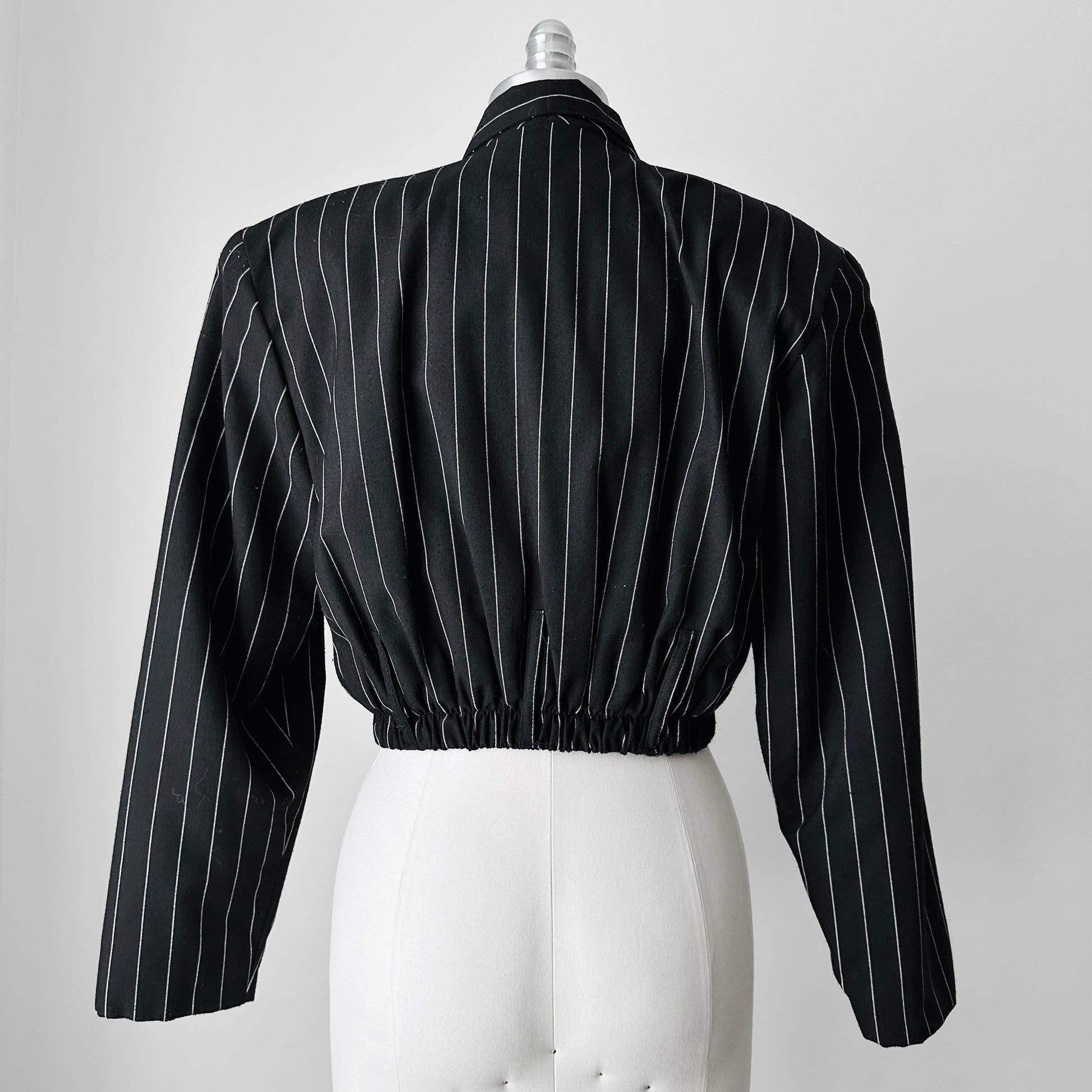 1980s Black and White Pinstripe Two Piece Suit - Sz. SM