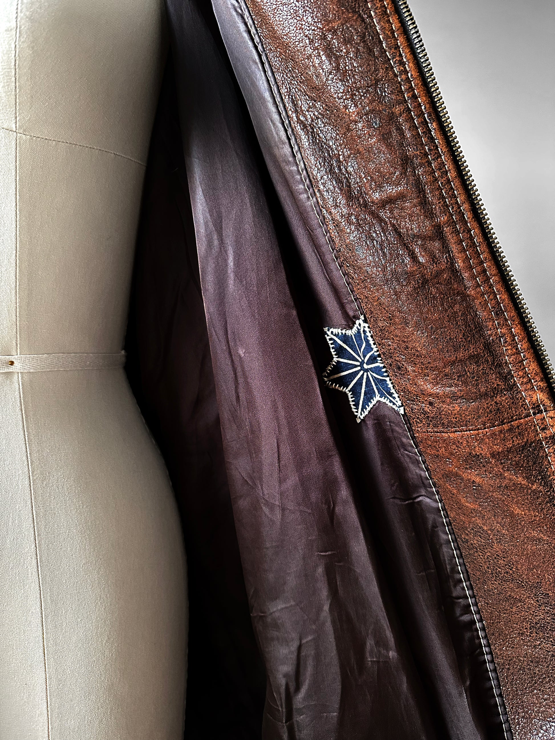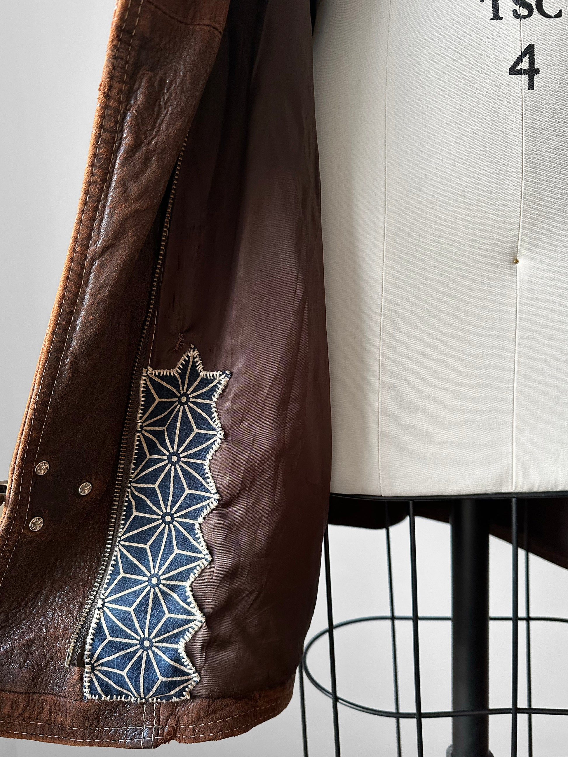 This incredible jacket needed some love and tlc on the inner lining, which created the perfect opportunity to add some custom mending to the mix. This piece deserved to be saved and is now ready for it's next adventure. The vegan leather is so real and is unmatched in realistic leather appearance, feel and quality.