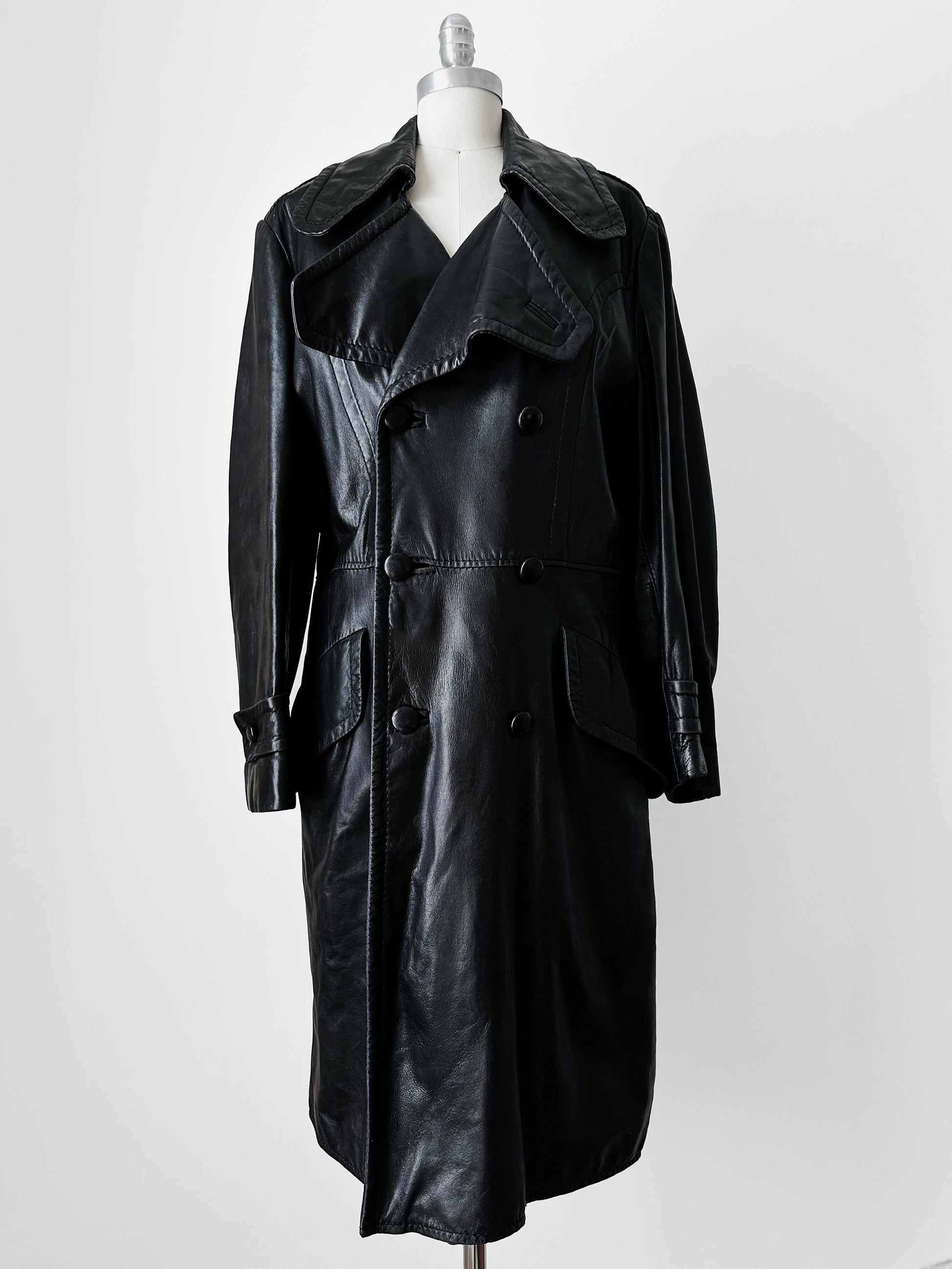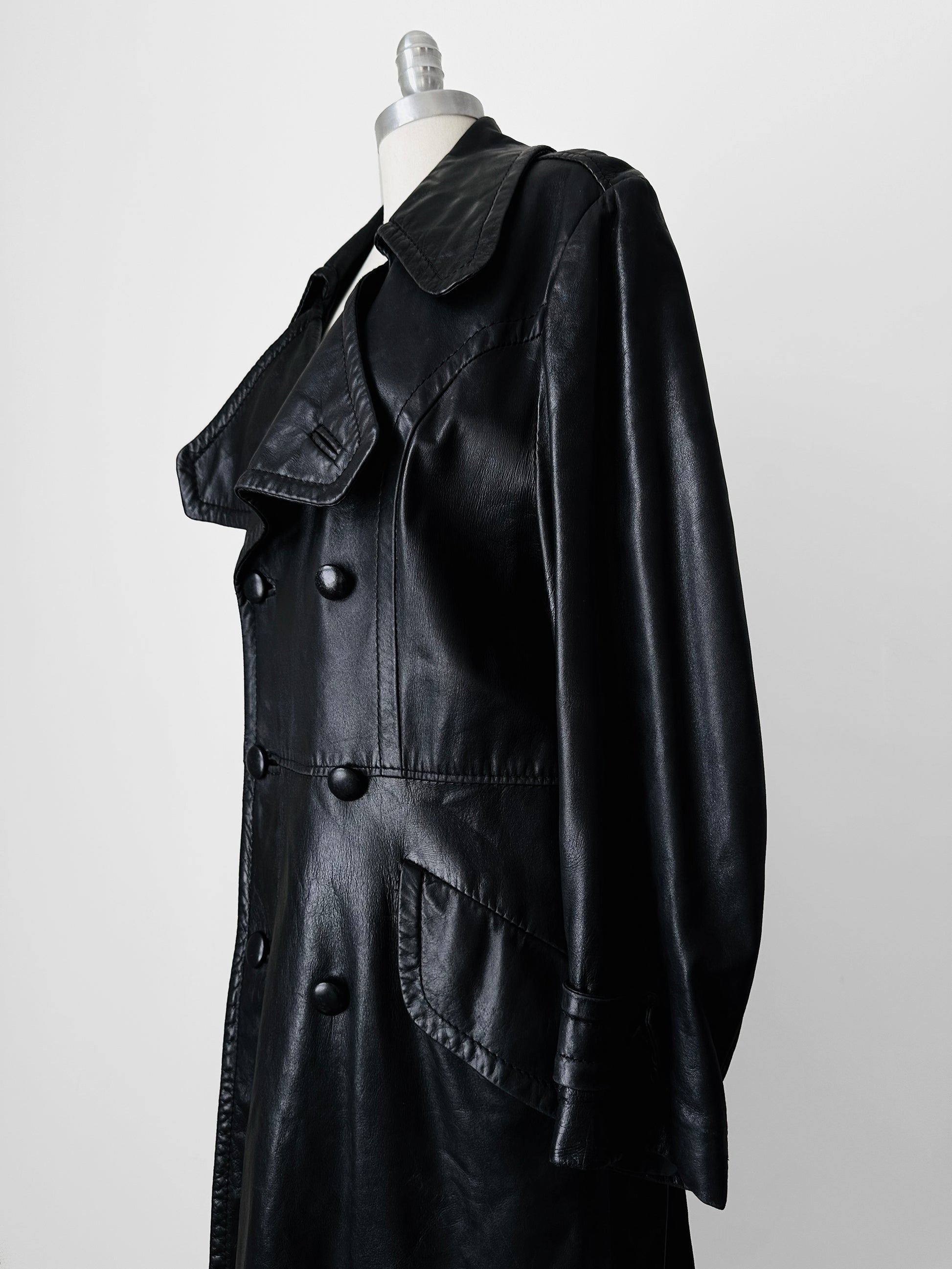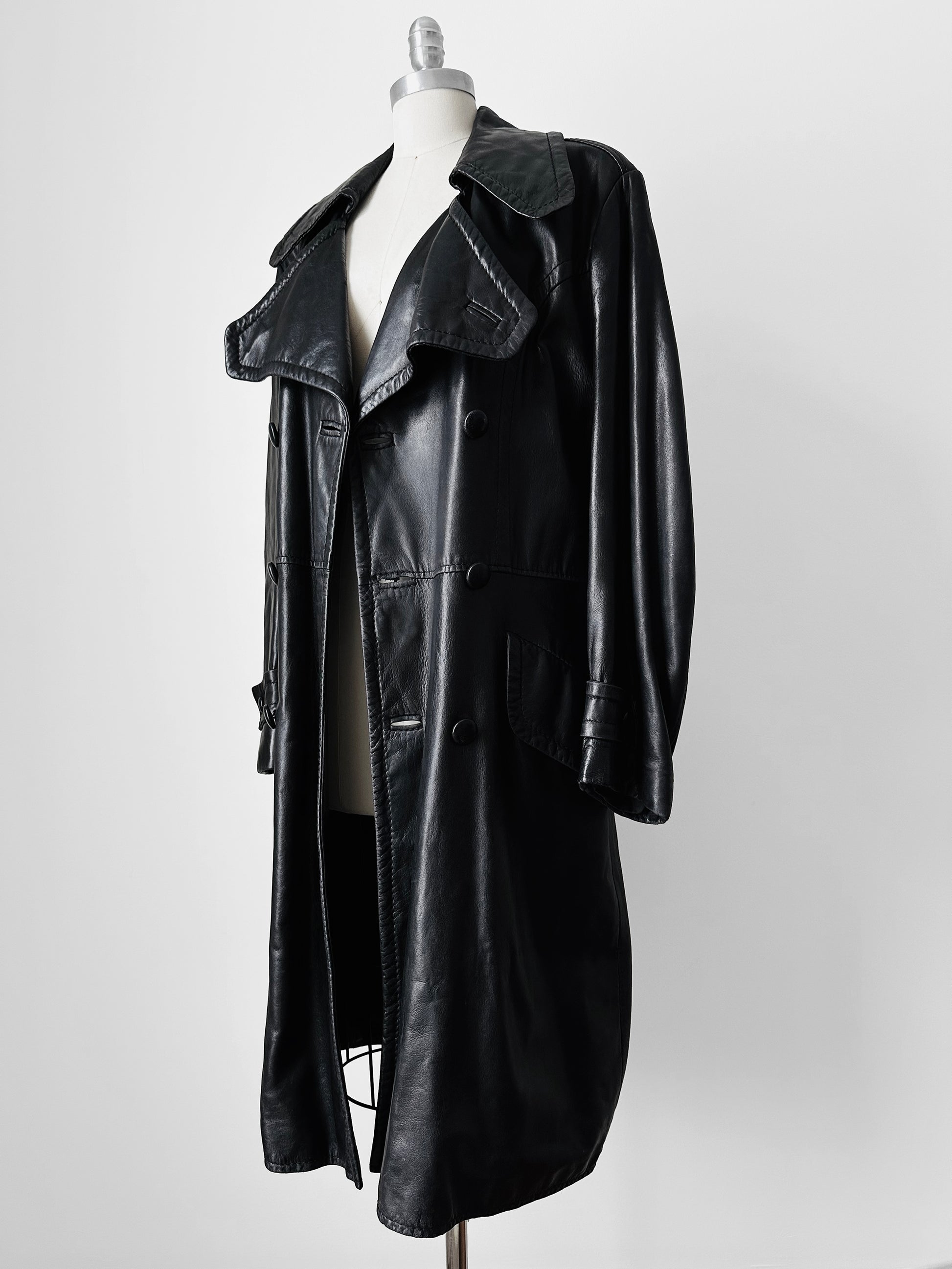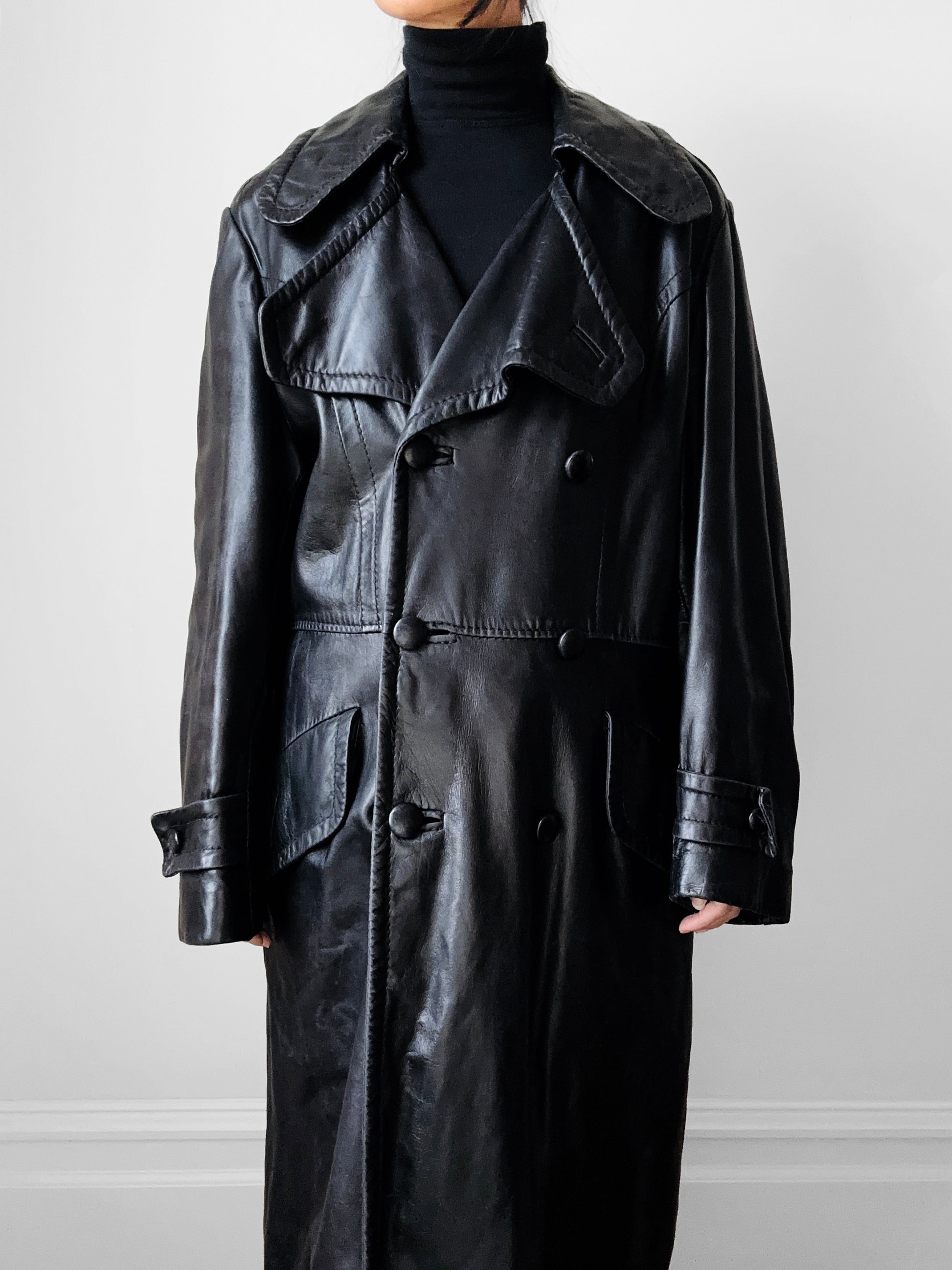 1980s Buttery Soft Long Black Leather Coat - Sz. Large