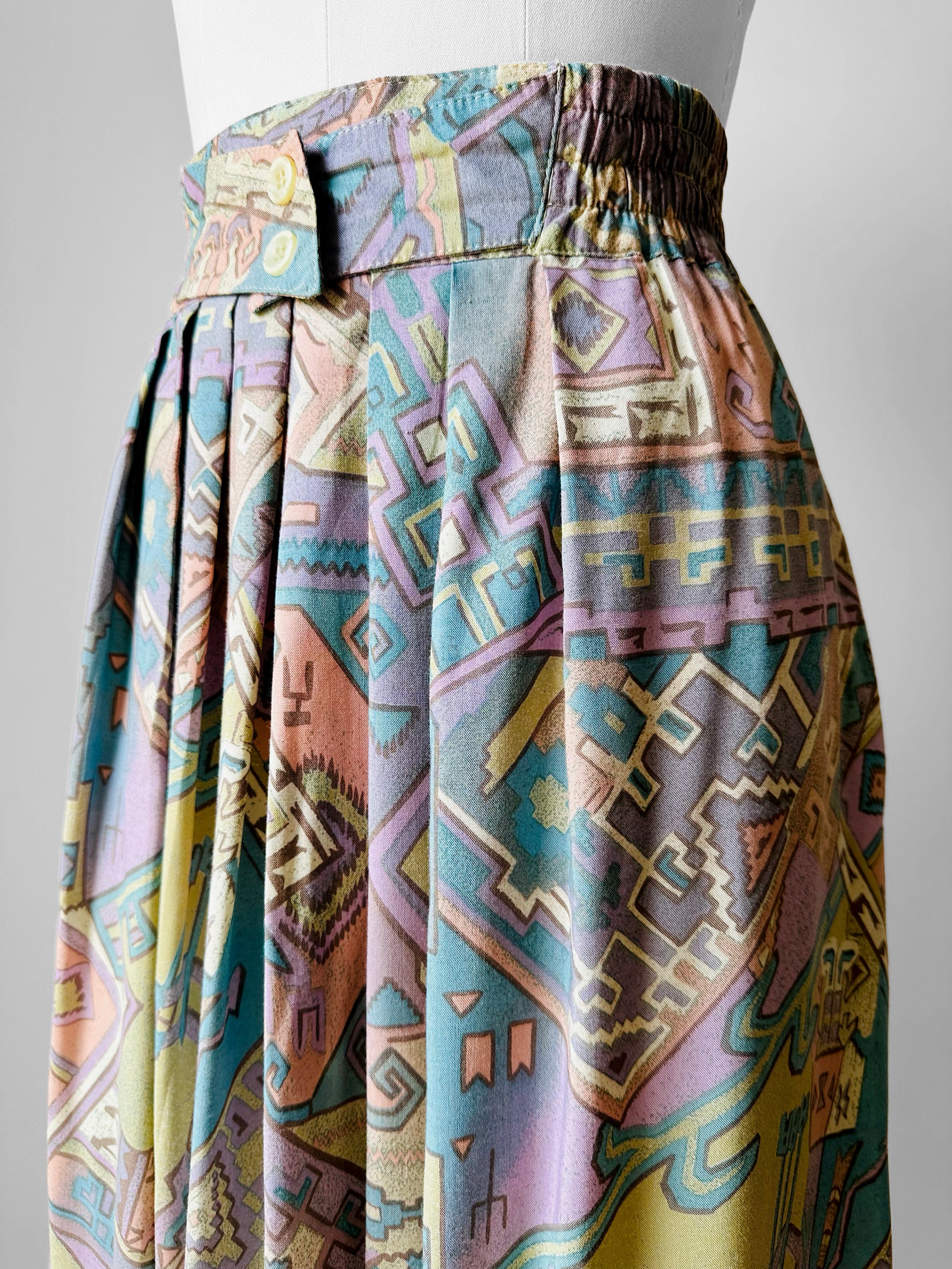 1980s Multi Tonal Pastel Patterned Skirt - Sz. L/XL