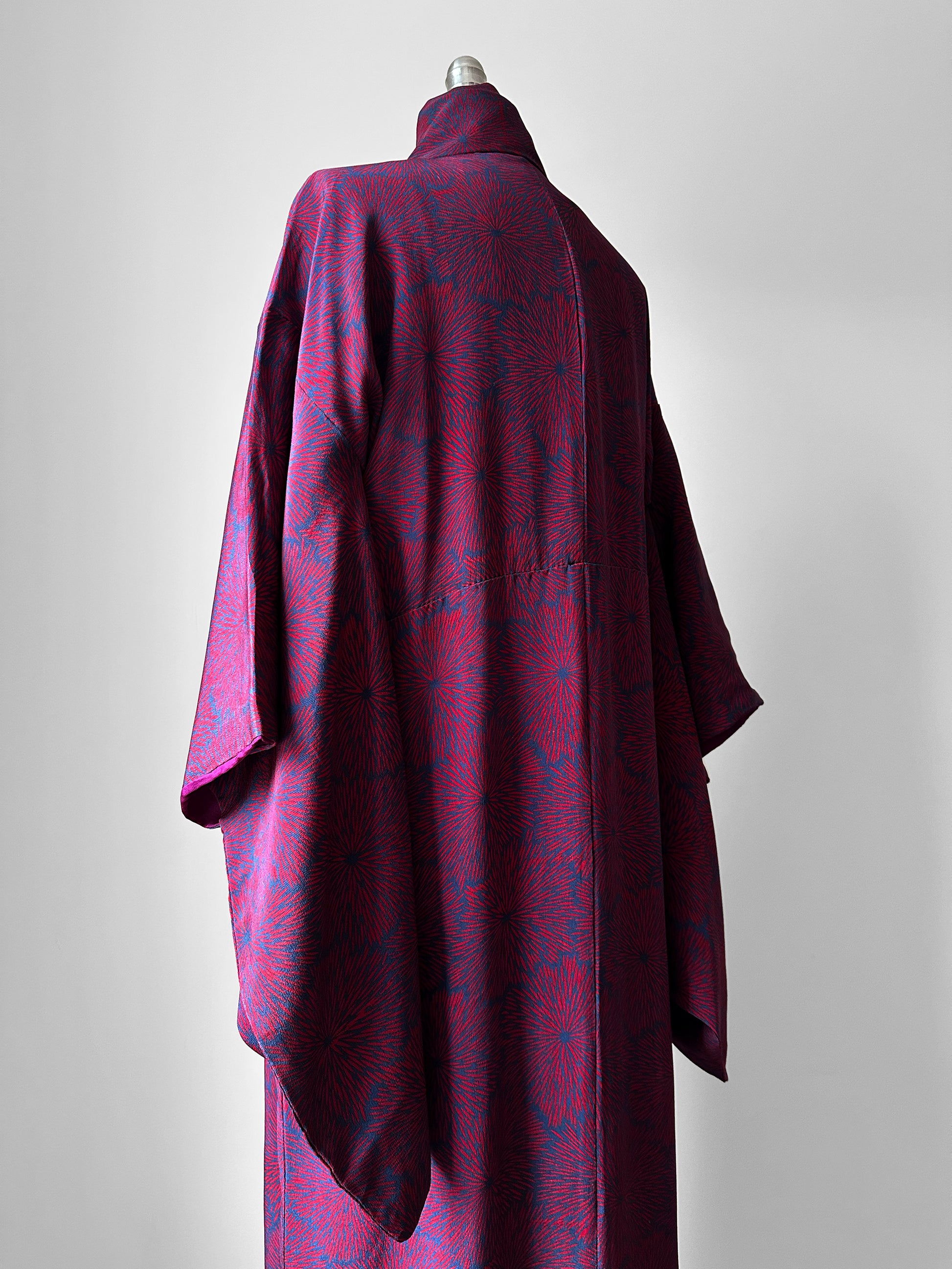 1980s Plum Navy Starburst Silk Kimono - Sz. O/S