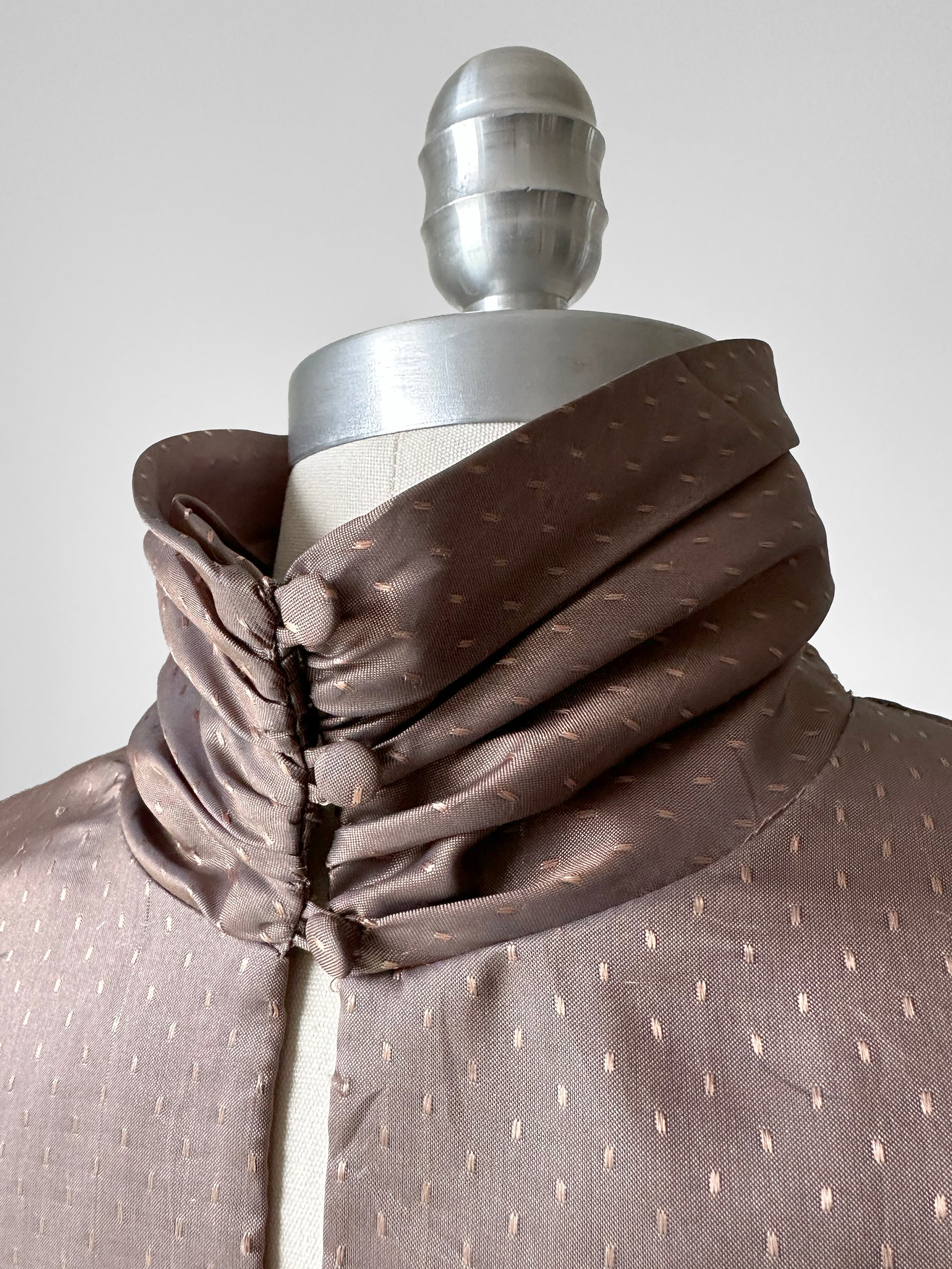 1980s Taupe Ruched Neck Dotted Metallic Blouse - Sz. M