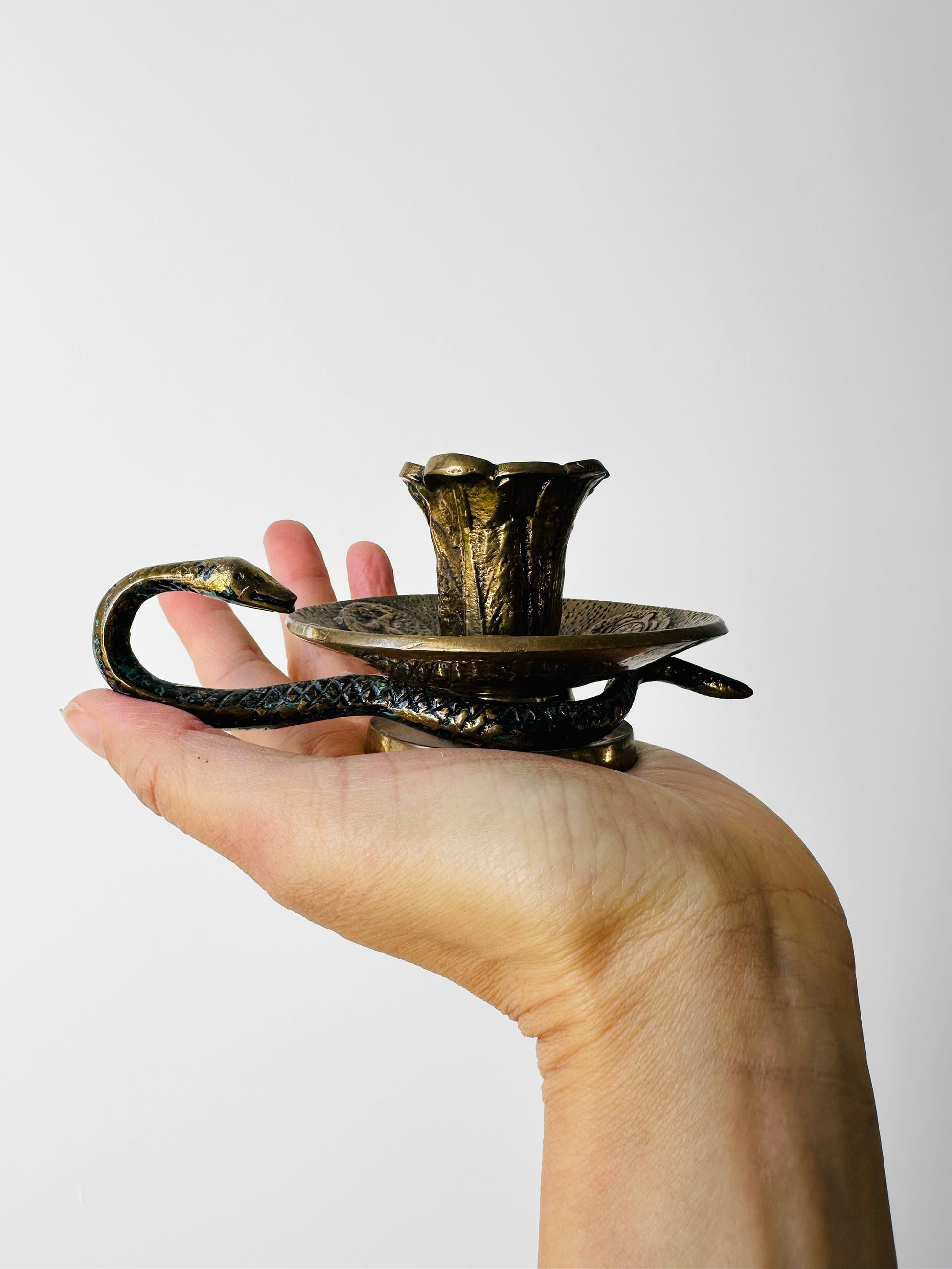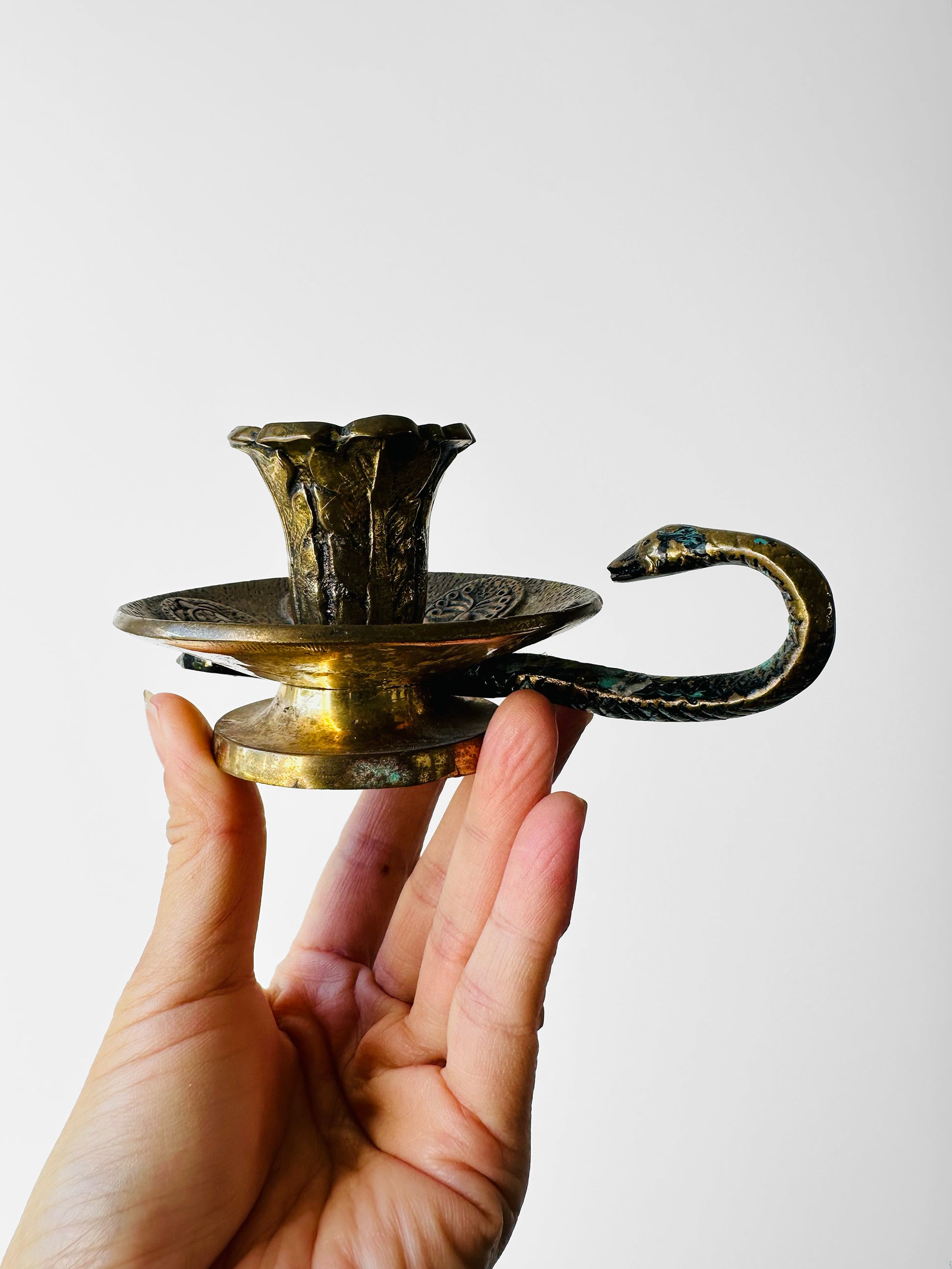 Antique Late 19th - Early 20th Century Brass Candlestick with Serpent Handle