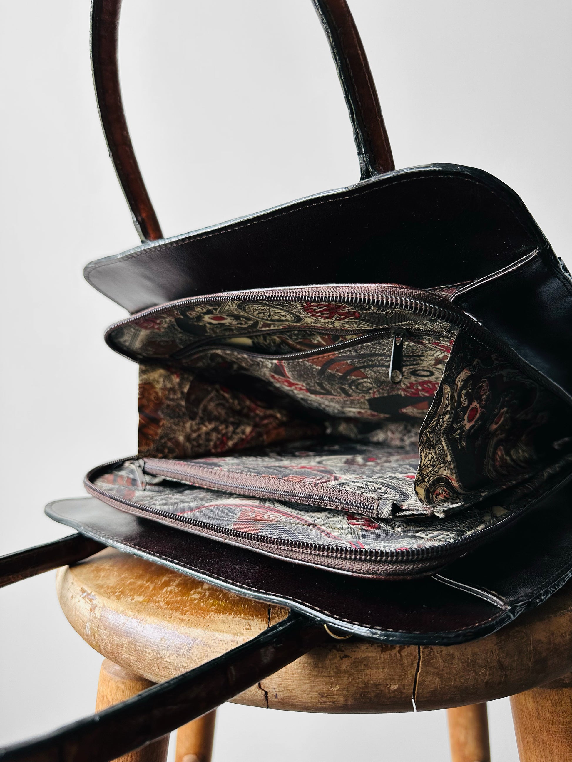 Late 20th Century Auburn Brown Textured Leather Handbag