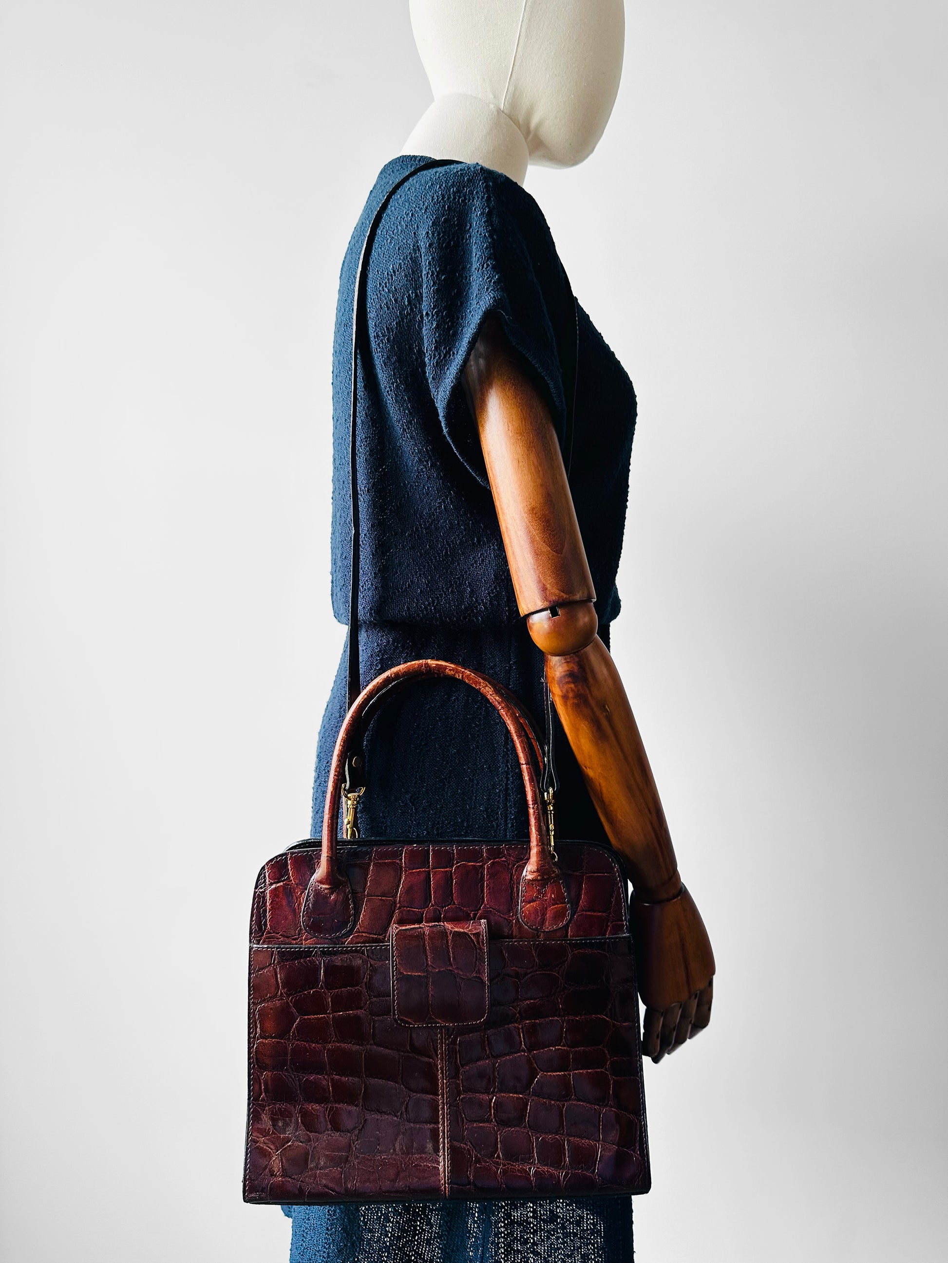 HISTORY: Embossed leather handbags have long offered a touch of luxury, mimicking exotic skins like alligator or crocodile without the high cost. This technique, popular for decades, involves pressing intricate patterns into leather to recreate the texture of rare materials, making high-fashion looks accessible to a wider audience. Often paired with classic silhouettes, these bags remain timeless accessories—celebrated for their elegance, craftsmanship, and enduring appeal.