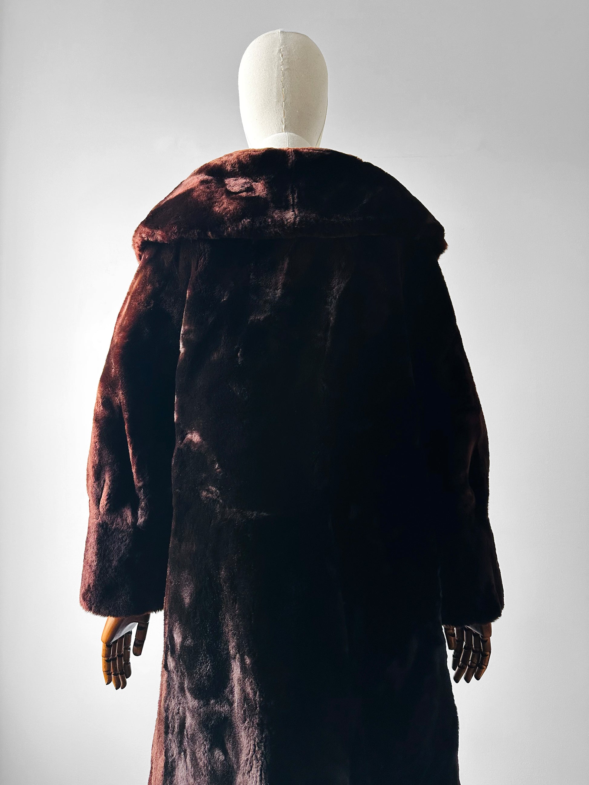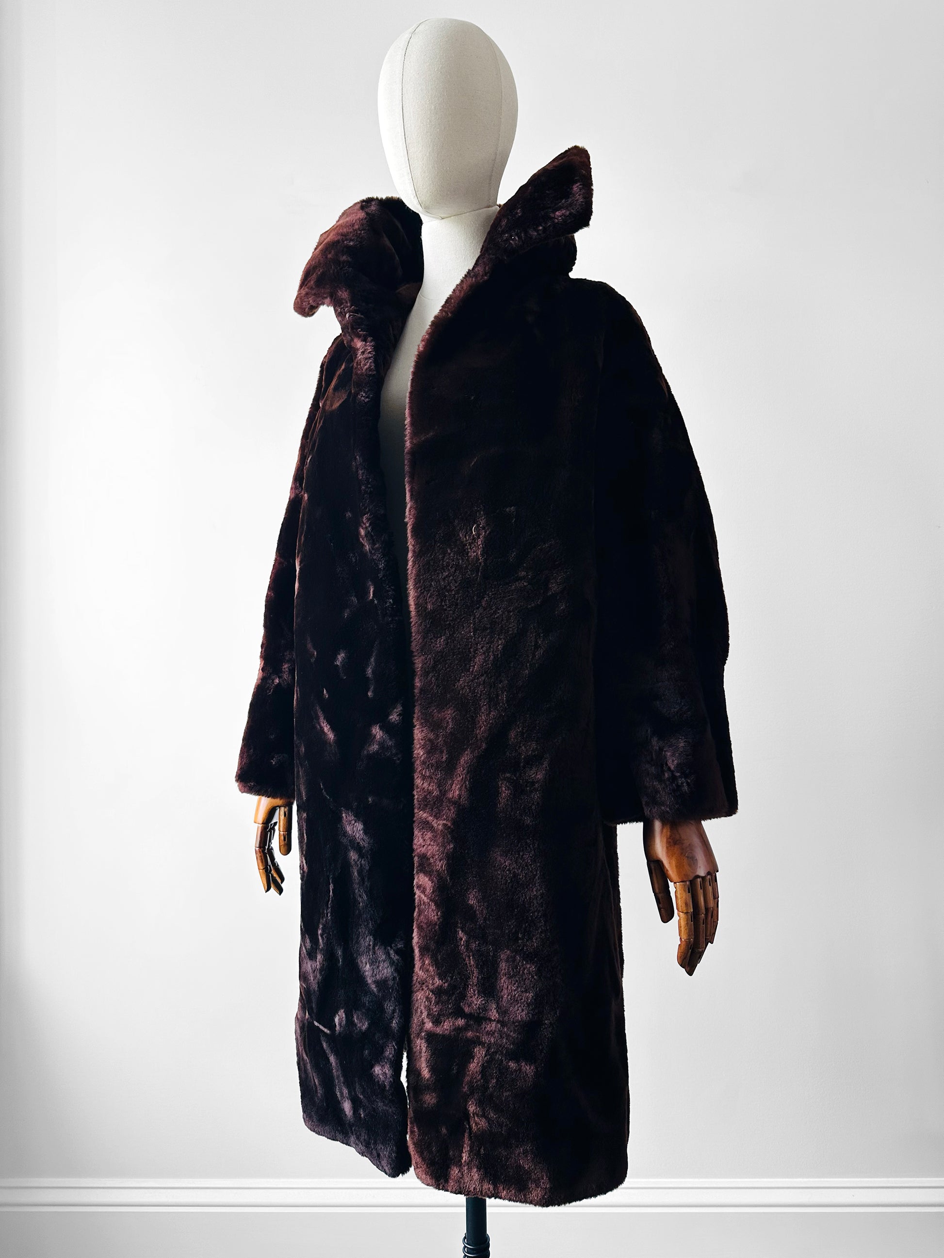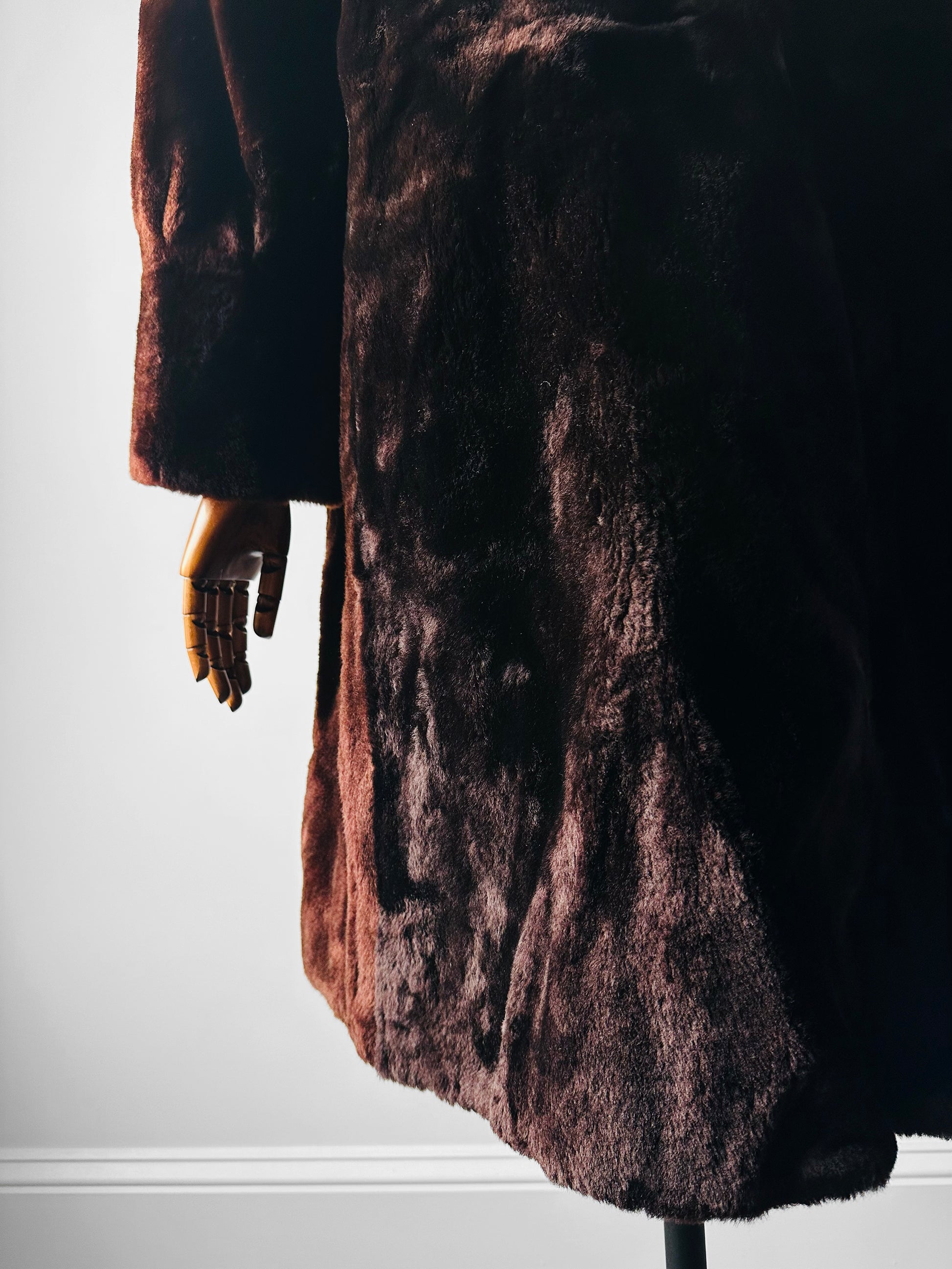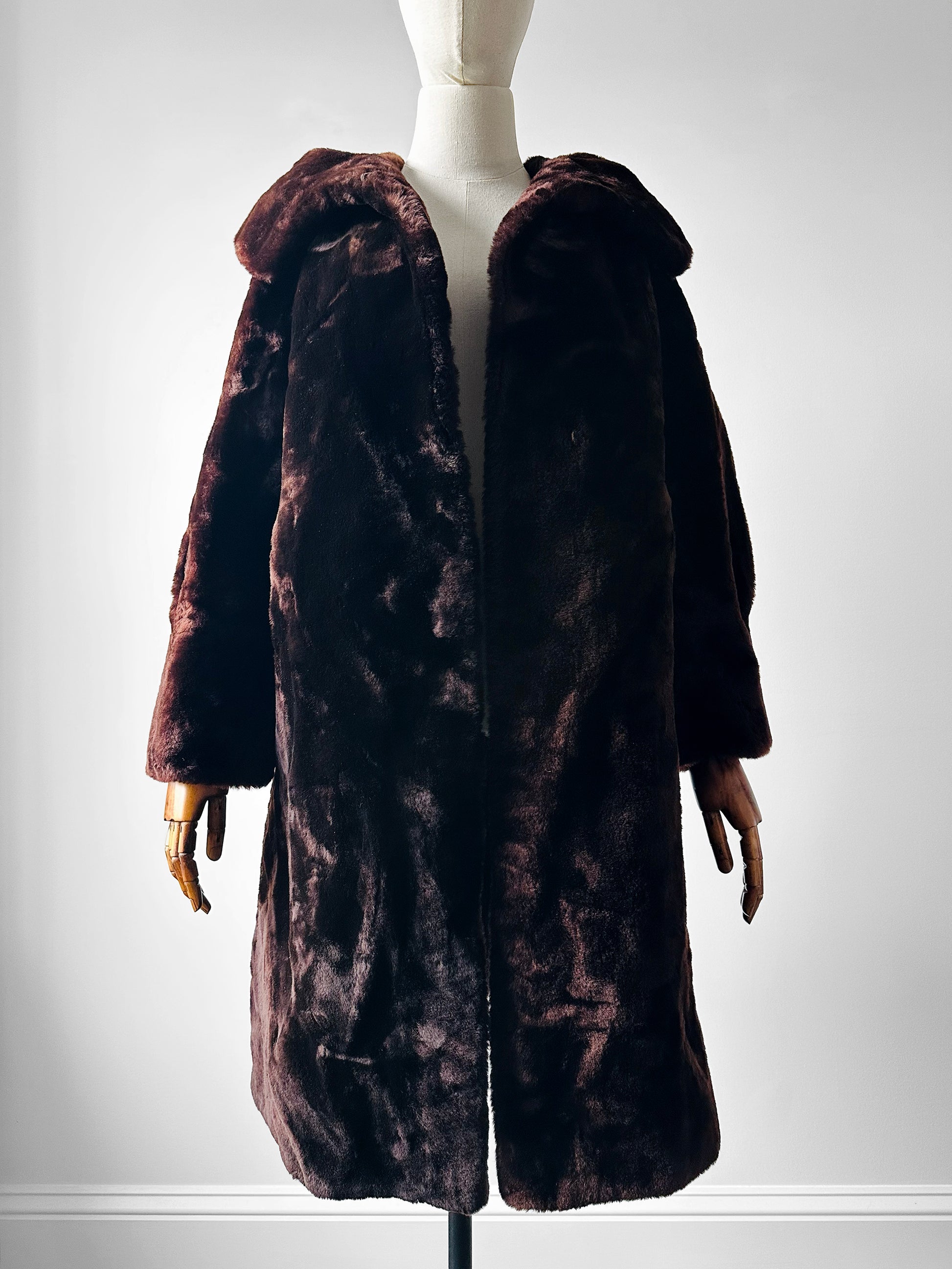 Mid-Century Deep Brown Alexander Becher and Eric's Southampton Lambswool A-Line Teddy Coat - Sz. Small