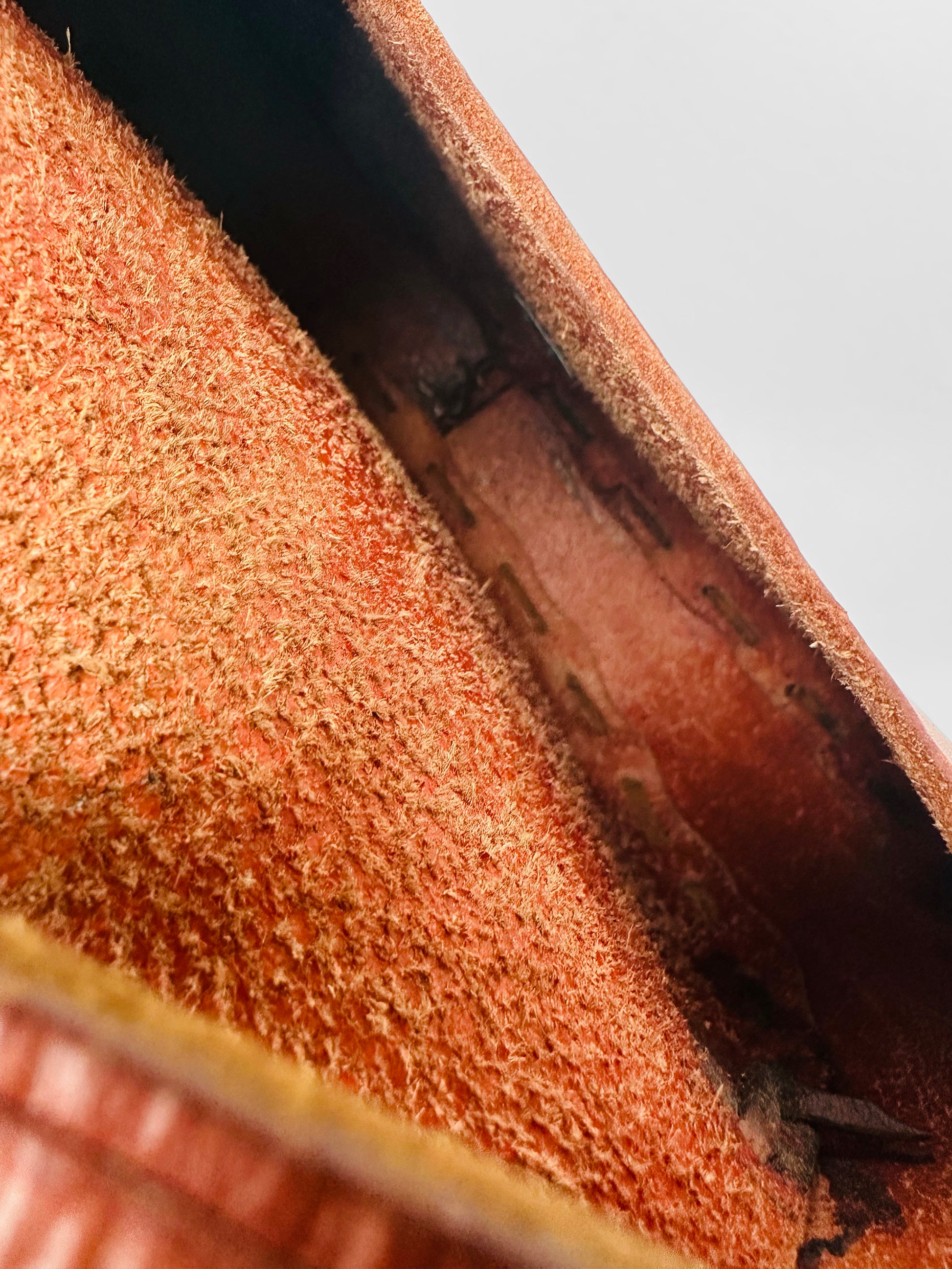 HISTORY: Tooled leather goods hold deep roots in equestrian and ranching traditions, where leather carving became both a functional craft and an art form. Using stamped and incised designs, artisans created decorative patterns that flourished in the American West during the mid‑20th century. Floral and scrollwork motifs like these became hallmarks of Western and Southwestern style in the 1960s and 1970s, appearing on everything from saddles to handbags. Valued today for their craftsmanship and character, these pieces remain enduring symbols of vintage artistry and heritage style.