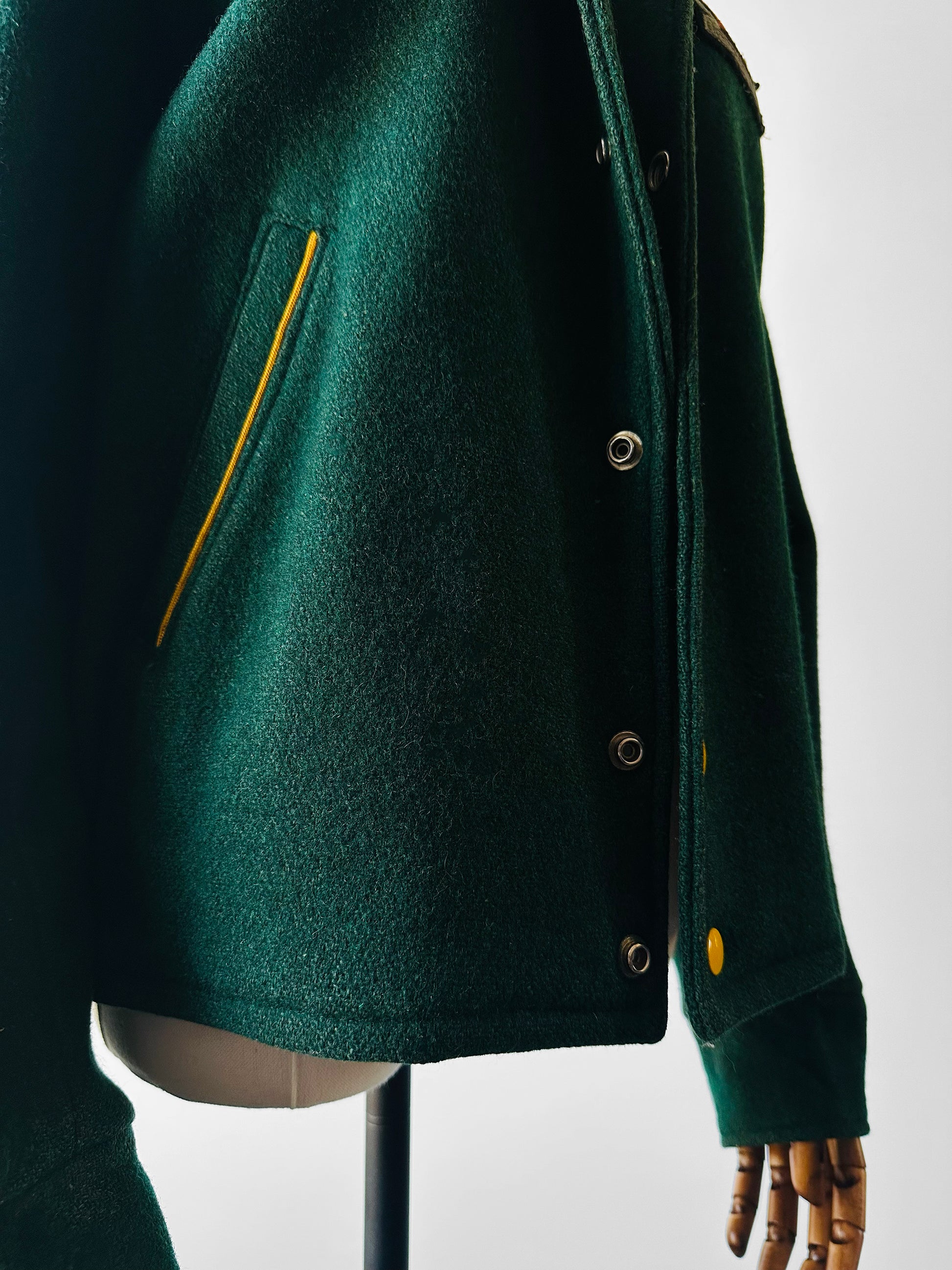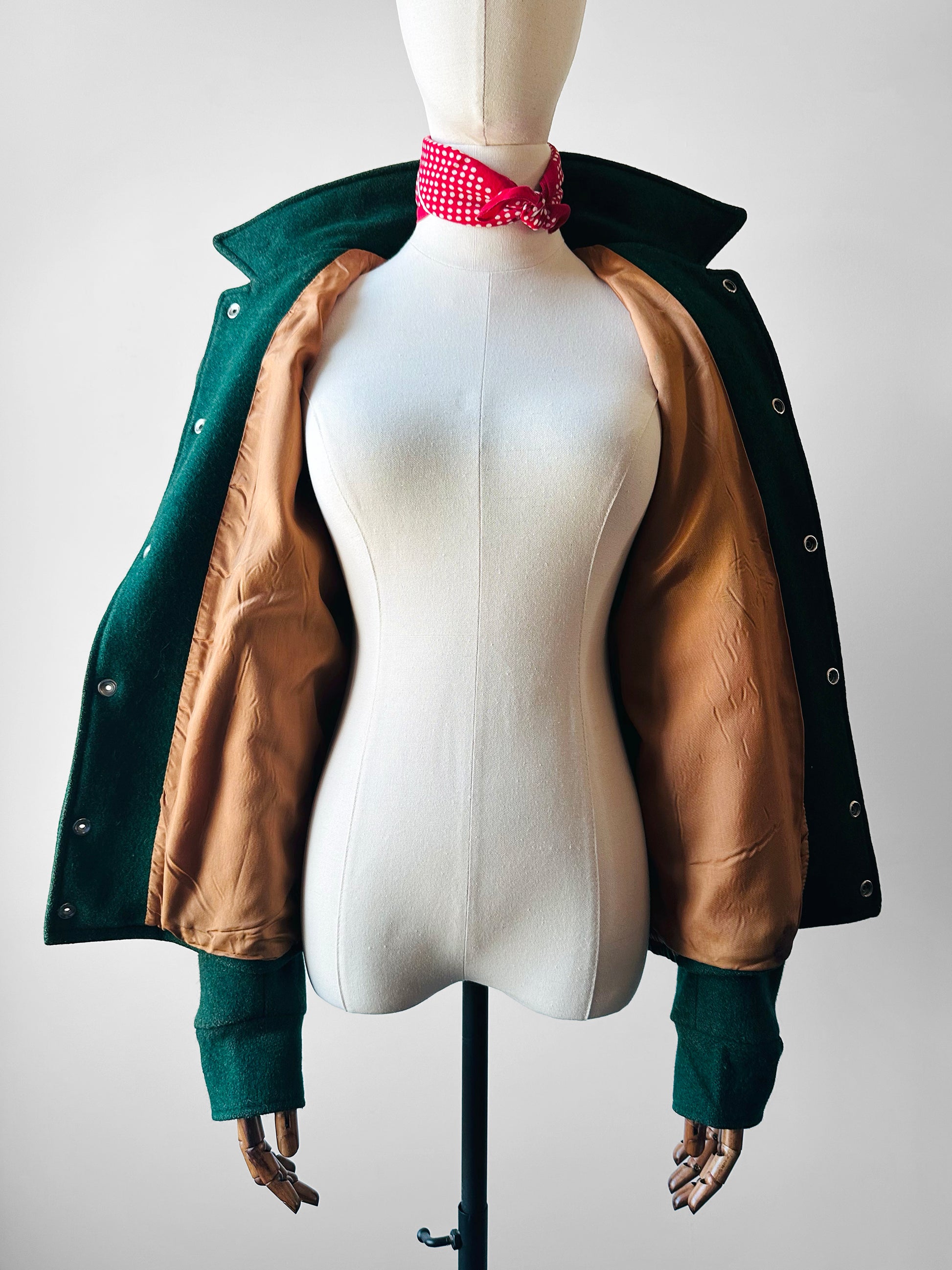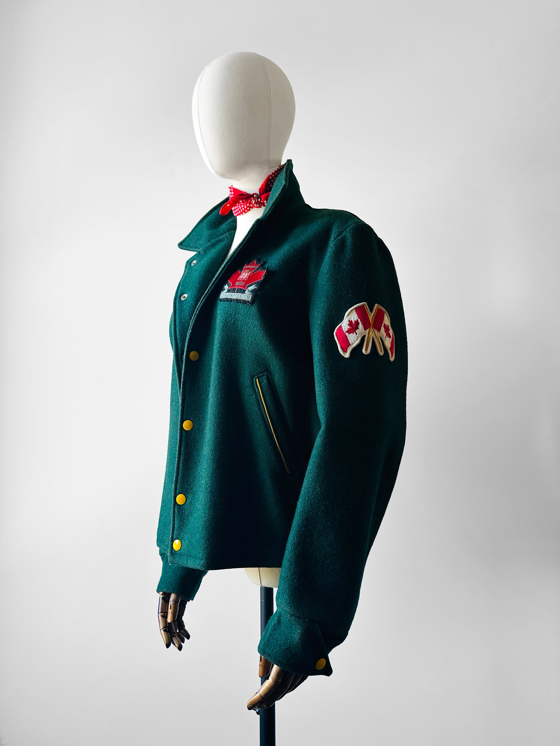 1970s - 1980s Hunter Green Embroidered Snap Button Canadian Armed Forces Patch Jacket