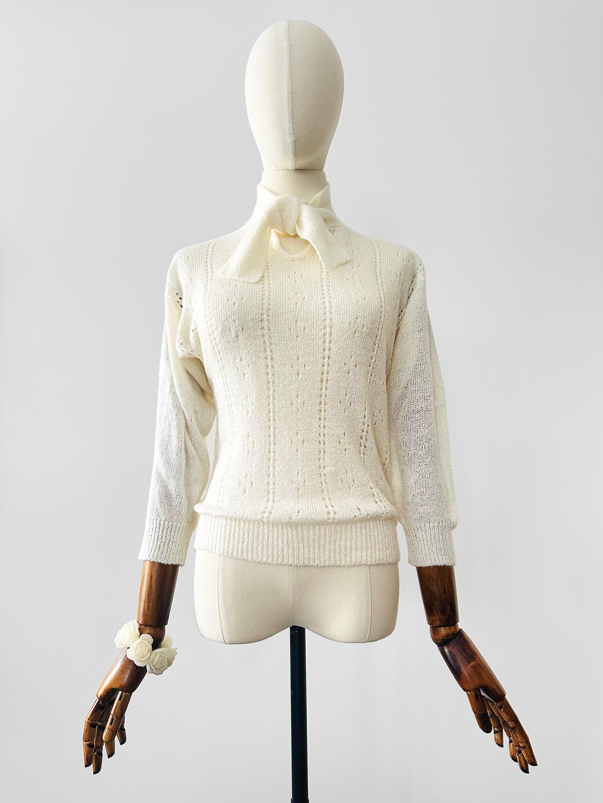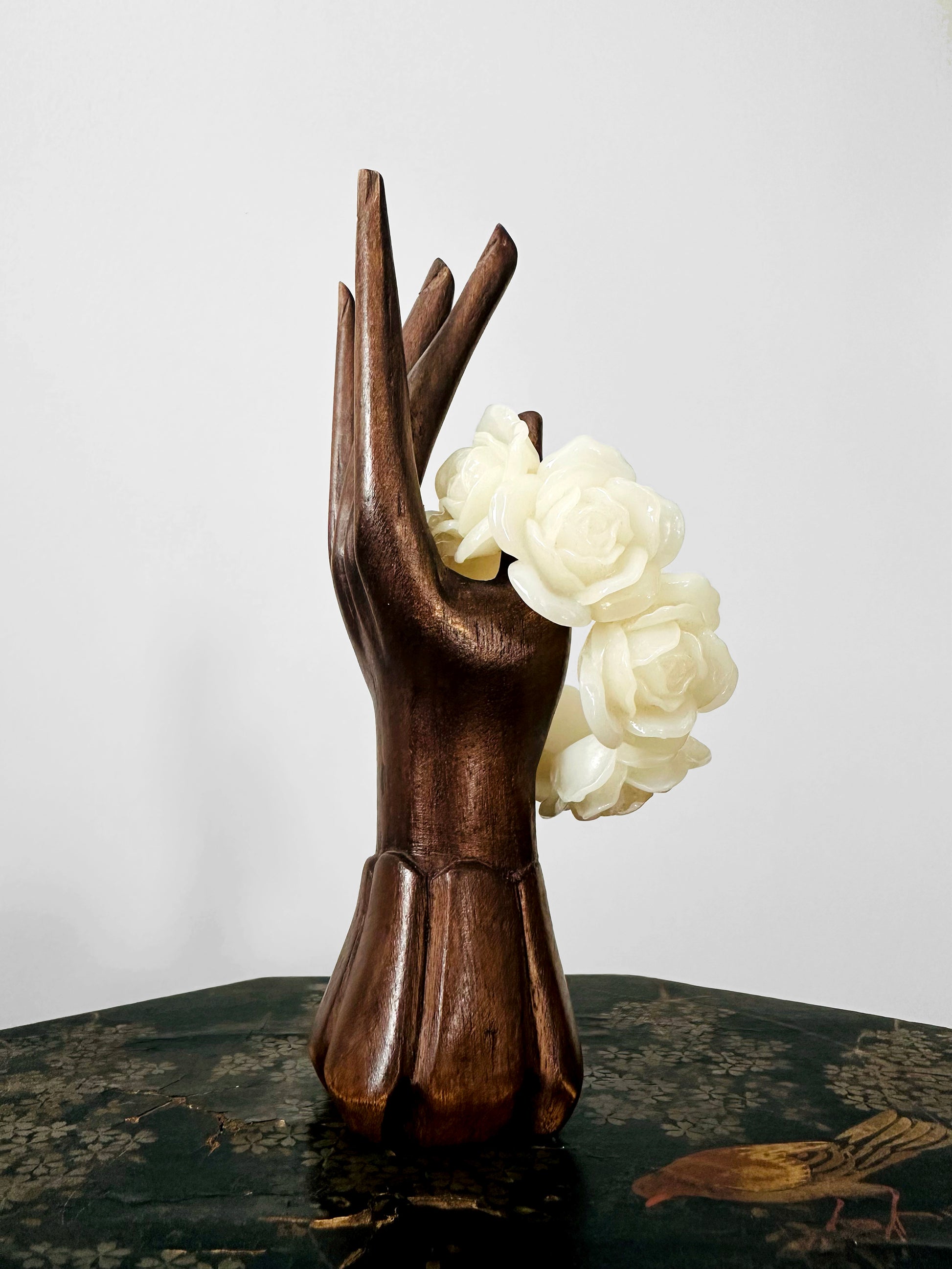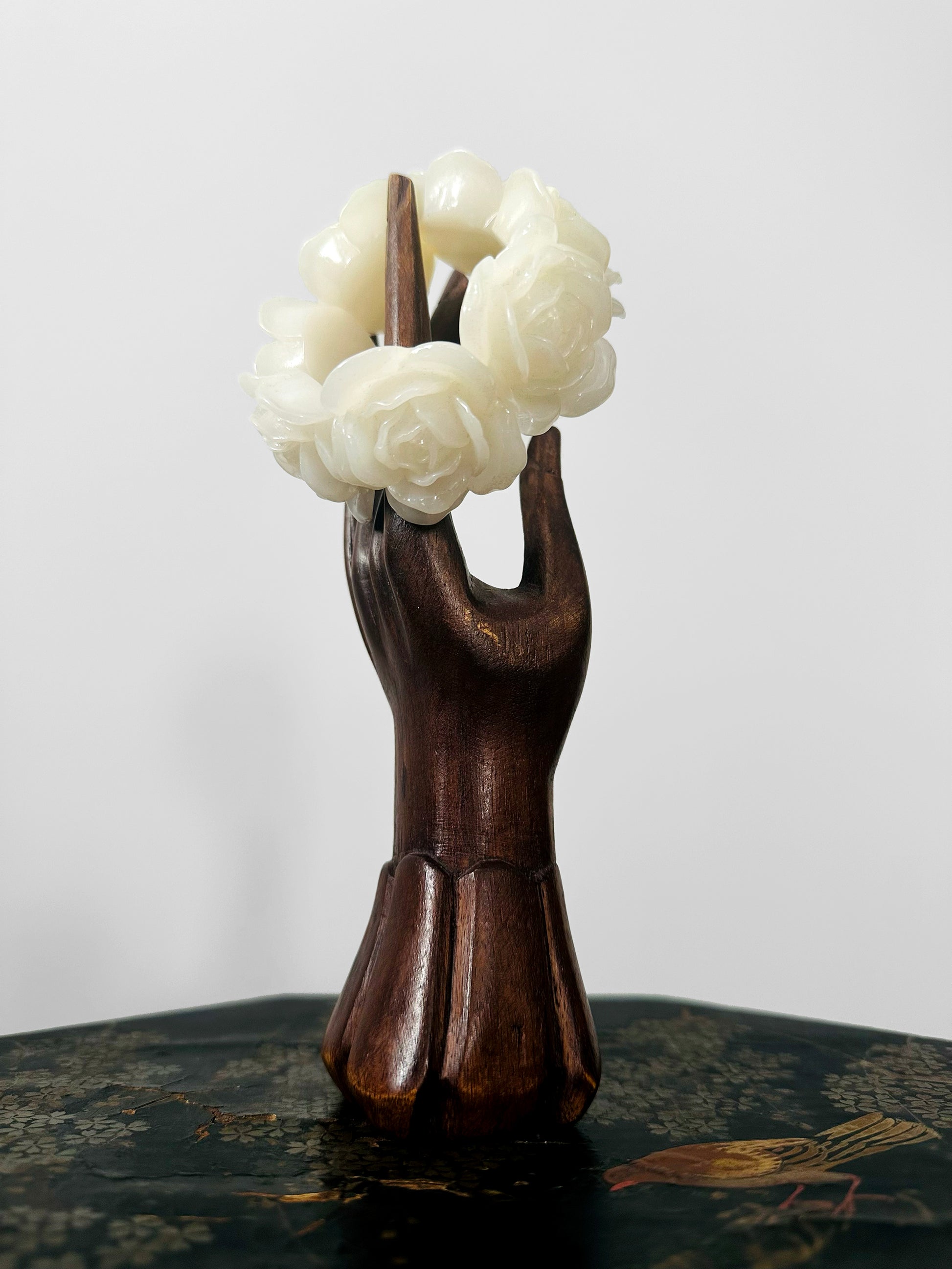 DESCRIPTION: Delicate and feminine with a touch of 1980s charm, this vintage cream florette bracelet features beautifully detailed rose motifs set on a comfortable elastic stretch band. The soft off‑white tone and sculpted floral design give it a romantic, timeless feel that pairs effortlessly with both casual and dressy looks. Easy to slip on and wear, this lightweight bracelet is perfect worn alone for subtle elegance or stacked with other vintage pieces for a layered statement. A lovely accessory for collectors of vintage jewelry or anyone who loves classic floral details.